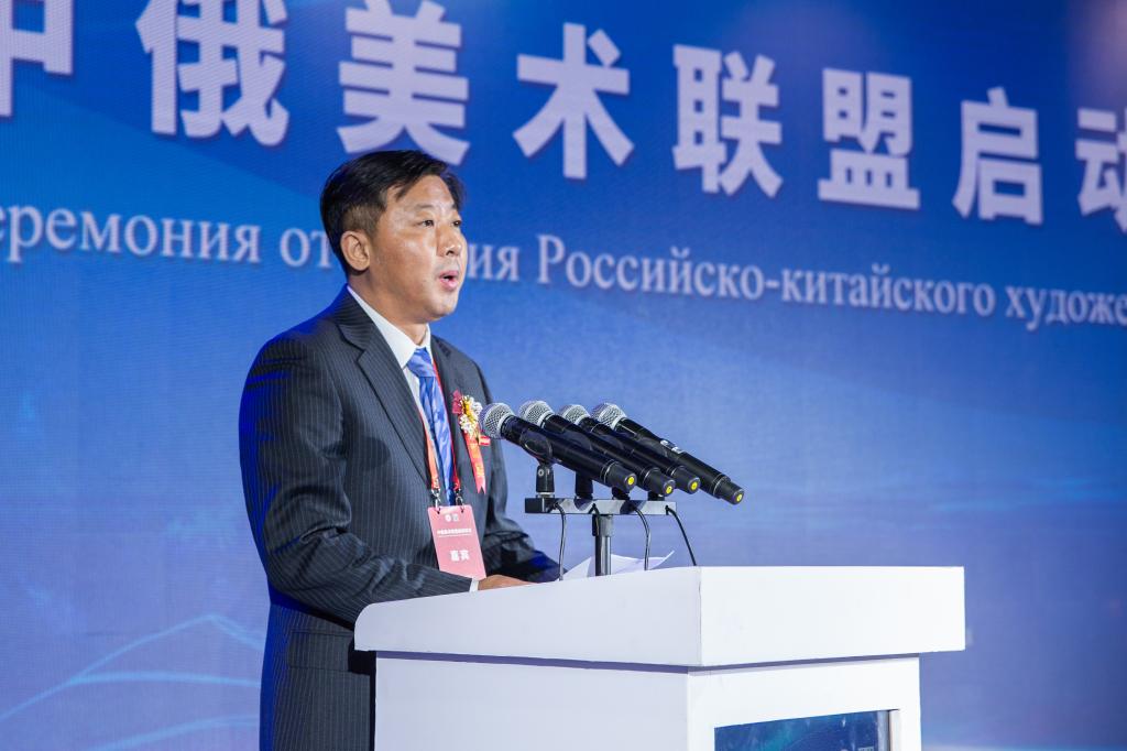 黑龙江省教育厅副厅长董成在致辞中对中俄美术联盟寄予厚望,并希望联盟成立后,坚持高标准推进,哈尔滨师范大学和苏里科夫美术学院要充分发挥牵头高校作用,团结各成员单位,挖掘中俄高校美术资源,紧紧依托联盟“中俄高校美术发展研究中心”“美术创作研究中心”“中俄师生艺术交流中心”“中俄艺术品信息化服务中心”四个中心,组织中俄文化艺术交流合作有影响的活动,产出有影响的学术成果,形成联盟品牌效应,为中俄两国新时代全面战略协作伙伴关系发展做出更大的贡献。