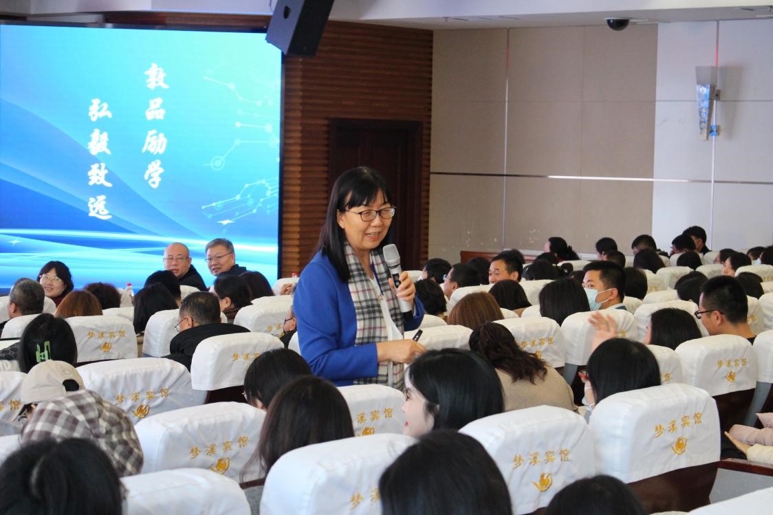 李庆霞在致辞中首先代表全校师生对罗滨来校讲学表示衷心感谢,对来校听取讲座的哈市教研员及骨干教师表示欢迎,简要介绍了近年来学校发展建设情况和取得的成果。并指出,作为教育工作者,我们肩负重任,要以“躬耕教坛、强国有我”的志向和抱负,积极开展新时代教育教学研究,创新人才培养模式,不断提升人才培养质量。