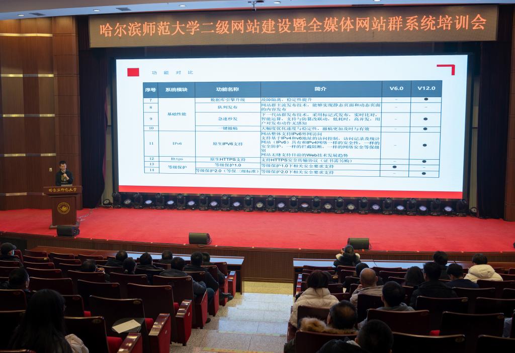为深入贯彻落实党的二十大精神,学习贯彻习近平总书记关于网络强国的重要论述,加强党对宣传思想工作的全面领导,进一步规范校园门户网站建设,形成以学校门户网站为主站,以各职能部门、学院为基础支撑的若干子站组成的网站群体系,按照学校党委、行政主要领导工作要求,12月1日下午,校长办公室联合党委宣传部在科学会堂举办学校二级网站建设暨全媒体站群系统培训会议。校党委副书记、工会主席郭砾出席会议并讲话。学校各职能部门主要负责人、各学院党委书记、二级网站管理员参加会议。会议由党委宣传部部长张艳君主持。