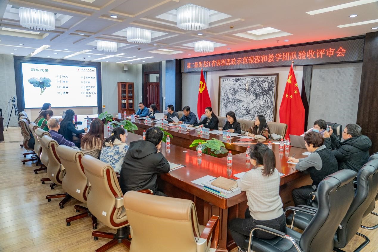 (李璐/文)为深入贯彻落实教育部《高等学校课程思政建设指导纲要》和黑龙江省《全面推进高等学校课程思政建设工作方案》的文件精神,按照《关于组织开展首批高校课程思政示范项目验收和第三批示范培育项目及优秀教学案例遴选工作的通知》的要求,我校于12月18日下午在行知楼1015会议室召开了第二批黑龙江省课程思示范课程和教学团队示范项目验收评审会。学校成立了验收评审专家组,校长蒋鲲任组长,校宣传部部长张艳君、教务处处长姜洪泉及首批省课程思政示范课程和教学团队负责人张金忠教授、李桃教授、郭东林教授及于海礁教授任组员。项目采取课程负责人答辩,验收评审专家现场评议的方式进行。