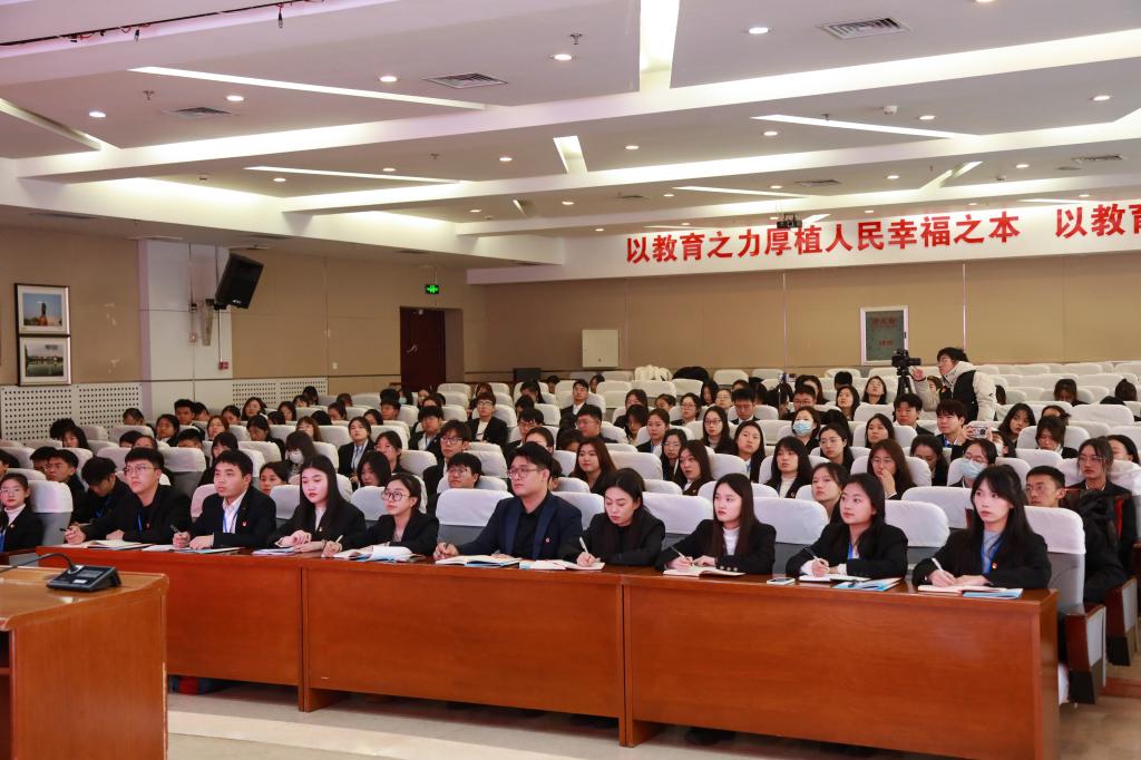 李庆霞在讲话时表示,“青马工程”是共青团为党育人的重要工作品牌,是哈师大深化大学生思想政教育工作的品牌项目,学校党委始终将青马工程摆到“后继有人”的战略高度部署推动,持续探索培养“新模式”,打造育人“大课堂”,搭建成长“大平台”。她向参训学员提出三点要求,一要品读科学真理之味,原原本本读原著,下足真功夫、苦功夫、硬功夫,学会从原著中找立场、找观点、找方法,掌握好看家本领,在勤思笃学中锤炼自我;二要燃起理想信念之火,用党的科学理论武装自己,用党的初心使命鞭策自己,用党的优良作风规范自己,不断增强敢于斗争、敢于胜利的志气、底气、骨气;三要担当民族复兴之任,以“百舸争流勇向前”的使命感和紧迫感自觉肩负重任,以“时不我待自奋蹄”的决心投身民族复兴洪流,为实现龙江全面振兴全方位振兴贡献青春力量,在实现中华民族伟大复兴中国梦的接续奋斗中谱写人生华章。 学校第十三期“青马工程”培训班理论导师、法学院青年教师、硕士研究生导师隋丽丽在发言中表示,将加强思想引领,以身立教,充分发挥学科专业优势,把理论原理讲授与学生思想关注点有效对接,把道理讲深讲透讲活,切实承担起理论导师的职责使命。 学校第十三期“青马工程”培训班学员代表、文学院本科生顾婉莹代表全体学员发言,表示将坚定理想信念,争当先锋模范,努力成为一名新时代坚定的青年马克思主义者。 “乡村振兴和团干部培训”专题班代表,共青团哈尔滨市呼兰区委员会副书记孙丽娜在发言中对哈师大团委为呼兰区各级团干部提供学习、交流、合作、创新的平台表示感谢。