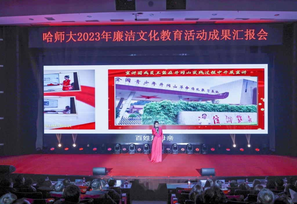 汇报会集中展示了原创歌曲《信仰》《梦》《陪伴》《身在最北方 心向党中央》《大河黑龙江》等历年来全国高校廉政文化作品征集暨廉洁教育系列活表演艺术类获奖作品,语言类及舞蹈类作品《红烛魂》《廉洁丰碑——焦裕禄》《血脉赓续》《起航哈师大》《富春山水中》等,以融思想性、艺术性、教育性于一体的文化形式,讲述党的故事、革命的故事、先进人物的故事,营造清音廉韵、风清气正的浓厚氛围。