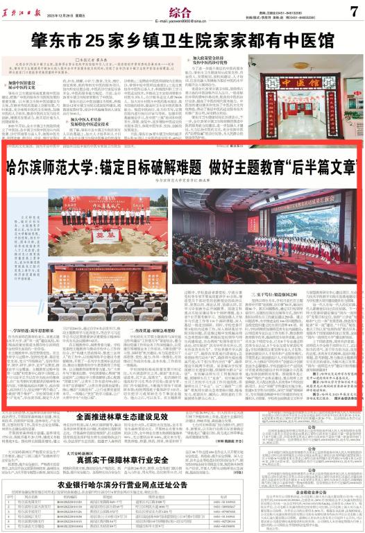 12月29日,黑龙江日报刊发了我校党委书记孙立军署名文章《哈尔滨师范大学:锚定目标破解难题 做好主题教育“后半篇文章”》,全文如下: