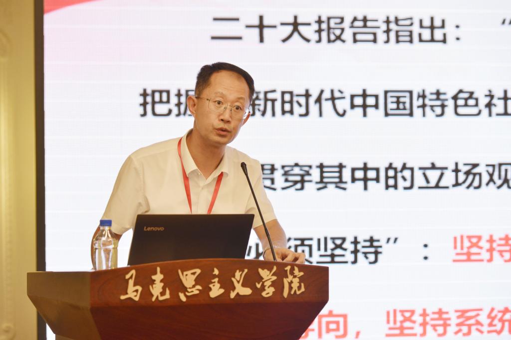张艳涛分享了“论‘六个必须坚持’的哲学意蕴”,强调把对习近平新时代中国特色社会主义思想的认识提升到哲学层面,开辟马克思主义中国化时代化新境界,并从回答人民之问、哲学之问、创新之问、中国之问、时代之问、世界之问对“六个坚持”进行了哲学解读。