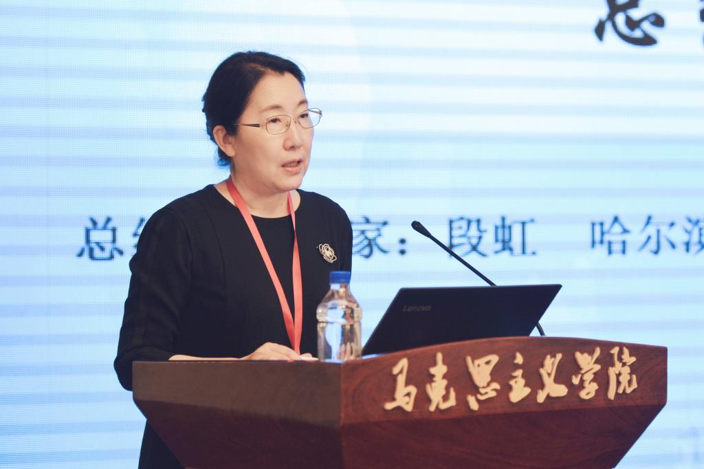 马克思主义学院院长段虹作会议总结。她指出,此次学术研讨会学校高度重视、学院积极筹备。与会专家学者聚焦“开辟马克思主义中国化时代化新境界”这一主题进行了有益的、深刻的探讨。专家们的发言高屋建瓴,以深厚的学术功力、强烈的问题意识,带来一场精彩的学术盛宴。此次会议的成功举办对马院师生教学、科研有深刻的启发和帮助,是围绕“开辟马克思主义中国化时代化新境界”这一命题所进行的高水平的学术指导。
