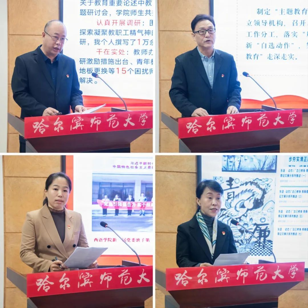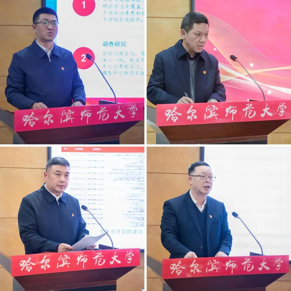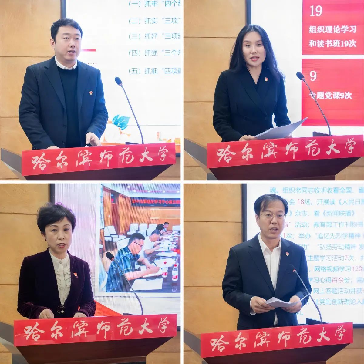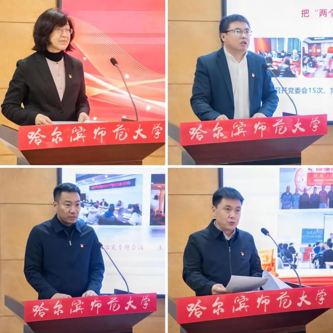 党委副书记、校长蒋鲲,党委副书记李庆霞,党委常委、纪委书记、省监委驻哈尔滨师范大学监察专员姜国庆分别对基层党委书记述职进行一对一点评。点评开门见山、高度凝练,对基层党委工作成绩亮点给予肯定,明确指出存在问题和下一步努力方向,有力推动基层党建工作提质增效。
