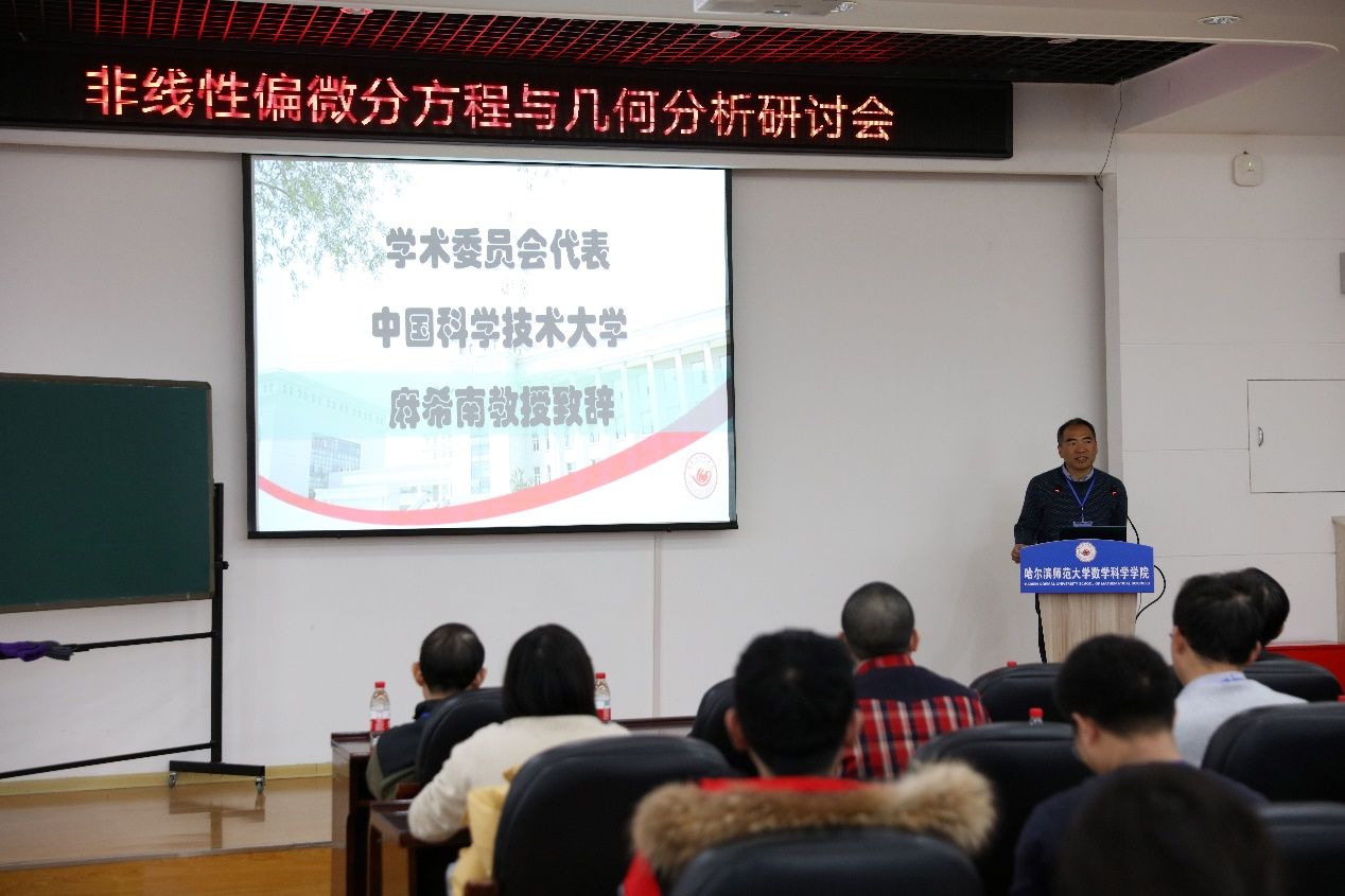 会议期间,复旦大学黄耿耿教授、北京大学周斌教授、东北师范大学常小军教授、山东科技大学张彬林教授、中国科学技术大学夏波副研究员、中国科学院数学与系统科学院叶剑副研究员、宁波大学许文昭博士、重庆交通大学张建军教授、南京大学的韦韡研究员、中山大学的袁伟副教授和中国科学技术大学吴天博士先后作精彩报告,分享非线性偏微分方程与几何分析及其相关领域的最新研究成果,呈现了丰富多彩的前沿报告,促进了非线性偏微分方程与几何分析研究的进一步发展,加强了国内外同行之间的交流与合作。在为期两天的研讨会中,与会的专家学者们现场互动与交流频繁,踊跃提问并进行了热烈的讨论,学术氛围十分活跃,让参会的同学们受益匪浅。