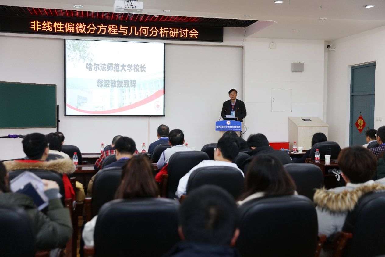 蒋鲲向全体与会专家学者表示热烈的欢迎,并向大家介绍了学校和数学科学学院的发展情况。蒋鲲指出,党的二十大擘画了以中国式现代化全面推进中华民族伟大复兴的宏伟蓝图,突出强调要加强基础研究,突出原创、鼓励自由探索。以中国式现代化视域观照数学学科,可以让我们更加深刻地认识数学在社会历史进程中的地位和作用,对构建中国特色的学科体系、学术体系和话语体系都深有助益。期待各位专家交流思想,加深友情,共谋发展,共同推动偏微分方程与几何分析的发展,为中国数学的发展贡献更多的智慧与力量。