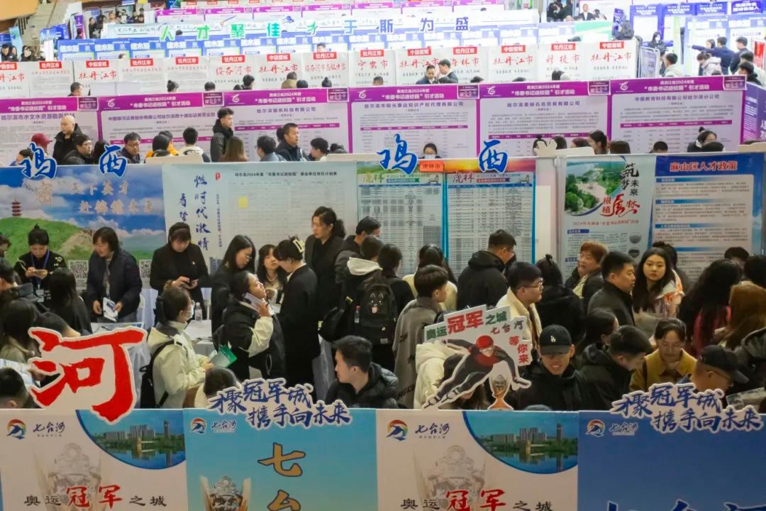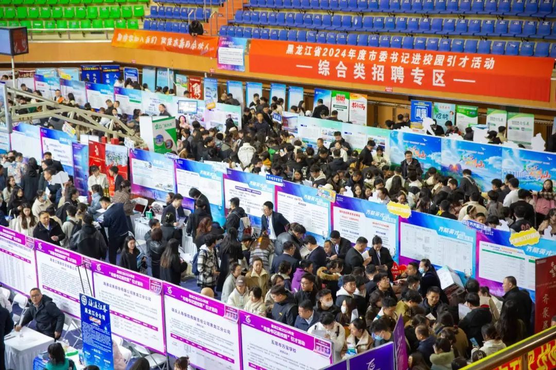 为提高留才引才精准性和实效性,招聘会现场设立综合类专区和教育类专区,极大地提高了毕业生选岗效率。招聘会现场循环播放各地市留才引才短视频、设置人才政策展板,宣传推介新时代龙江人才振兴“60条”和各地市人才政策,帮助高校毕业生了解省情市情,不断增进对龙江的认同感和归属感。