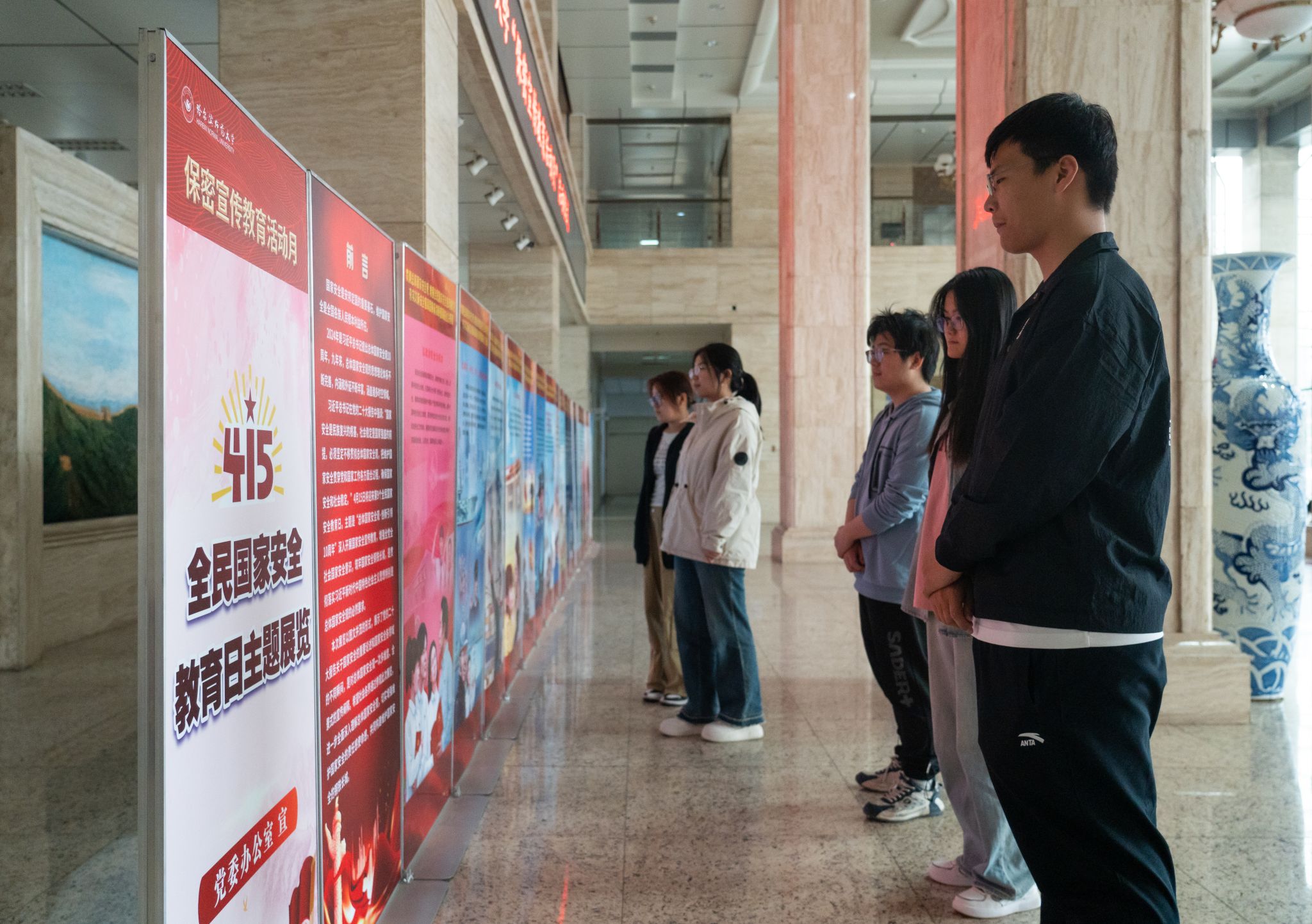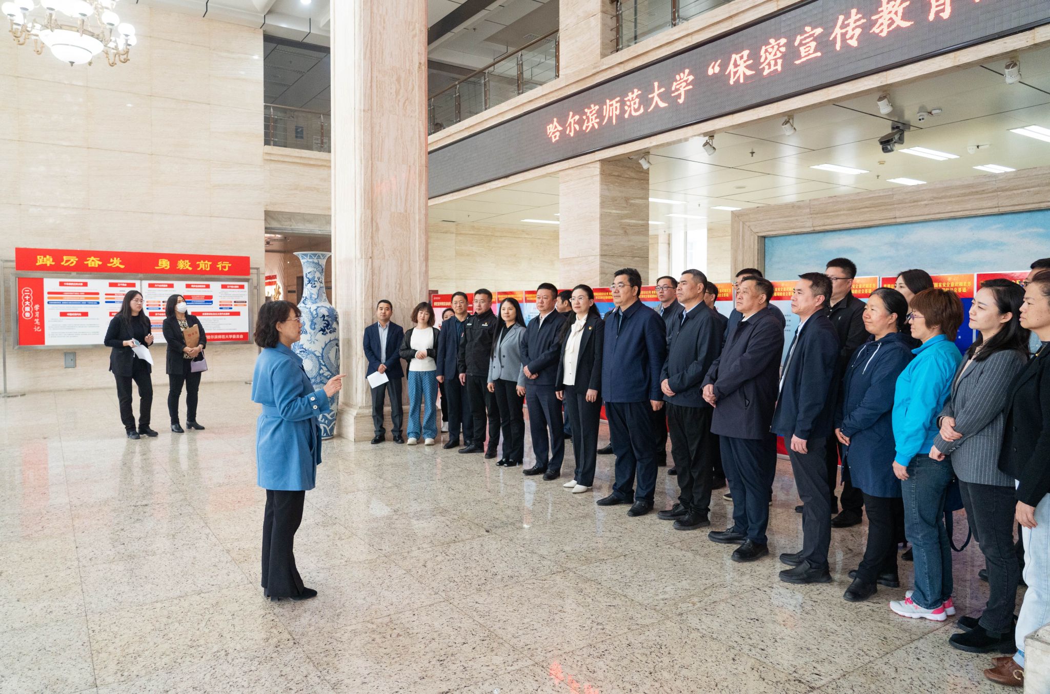 (张慧雯/文)为进一步贯彻落实习近平总书记关于保密工作的重要讲话重要指示批示精神,做好新修订的《中华人民共和国保守国家秘密法》(以下简称《保密法》)宣传贯彻工作,切实提高师生保密意识,增强保密观念。经学校党委常委会会议研究,决定开展哈尔滨师范大学“保密宣传教育活动月”活动。4月15日下午,值此第九个全民国家安全教育日到来之际,我校在行知楼一楼举办保密宣传教育活动月启动仪式暨“4·15”全民国家安全教育日主题展览。学校党委副书记李庆霞出席活动并讲话。相关单位负责人和工作人员参加活动。启动仪式由党委办公室副主任孙志成主持。