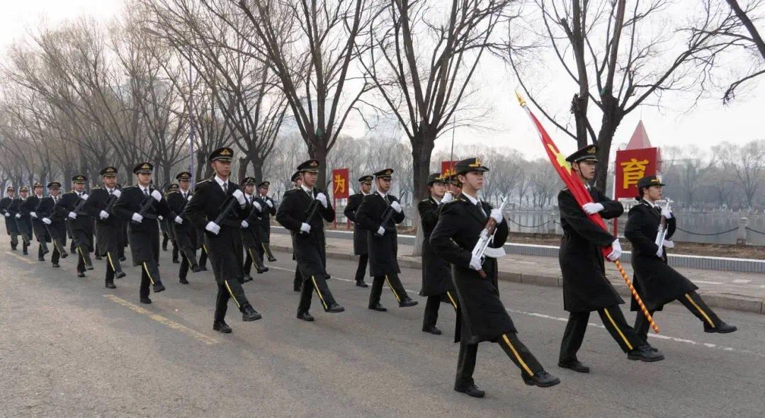 在威武雄壮的国歌声中,鲜艳的五星红旗冉冉升起,迎风飘扬。