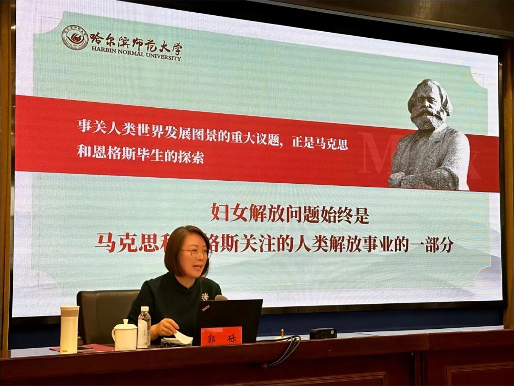 (李晓杰/文)4月2日,教育部思想政治工作队伍培训研修中心(哈尔滨师范大学)在黑龙江省委党校举办博士研究生研学活动,我校党委副书记郭砾为省委党校主体班次做了题为“跟习近平总书记学习马克思主义妇女观”的专题讲座,中心部分在读博士参加。