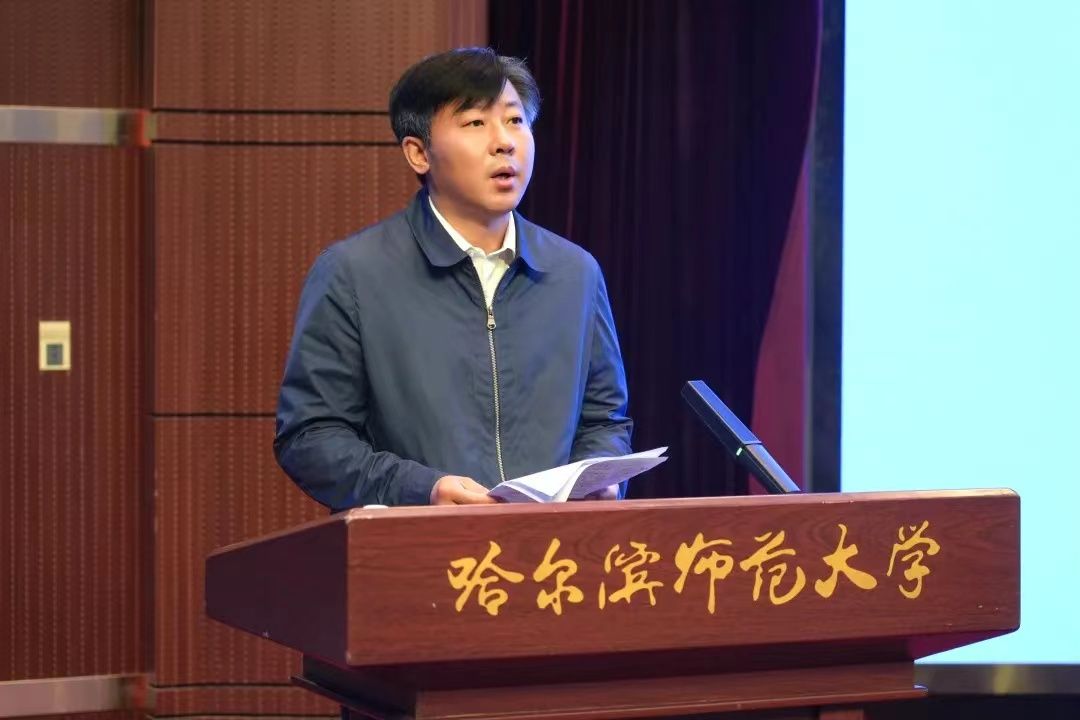 (李璐/文)6月5日上午,哈尔滨师范大学本科教育教学审核评估专家意见交流会在松北校区科学会堂举行。专家组组长、广西师范大学党委书记贺祖斌,副组长黑龙江省高校工委原书记、黑龙江省教育厅原厅长徐梅,专家组成员黑龙江中医药大学副校长张浩、苏州大学博物馆馆长李超德、哈尔滨工程大学校长助理兼本科生院常务副院长耿敬、陕西师范大学马克思主义学院院长刘力波、东北农业大学学生处处长于兴业、江西师范大学评估中心主任揭安全、东北财经大学统计学院副院长孙玉环,项目管理员东北农业大学人事处副处长黄嘉鑫、教学评估科吉东,秘书黑龙江东方学院教务处处长叶非、广西师范大学教务处张文超、牡丹江医学院教务处刘明明、黑龙江中医药大学教务处韩宁、黑龙江科技大学教学质量评估中心任梦轩;黑龙江省教育厅一级巡视员丁哲学、教育督导室主任一级调研员黄冬艳、高等教育处处长孙世钧、教育督导室马云艳出席会议。我校党委书记孙立军,校长蒋鲲,党委副书记、工会主席郭砾,党委副书记李庆霞,党委常委、副校长马明,党委常委、纪委书记、省监委驻哈尔滨师范大学监察专员姜国庆,党委常委、副校长尹剑锋,党委常委、副校长王辉,党委常委、副校长徐国峰,党委常委、统战部部长张志宏,党委常委、组织部部长刘可心,党委常委、宣传部(教师工作部)部长张艳君,校院两级督导,相关职能部门科级以上干部,各学院领导班子成员、专业负责人、系主任、教研室主任、教师代表、学生代表近500人参加会议。会议由徐梅主持。