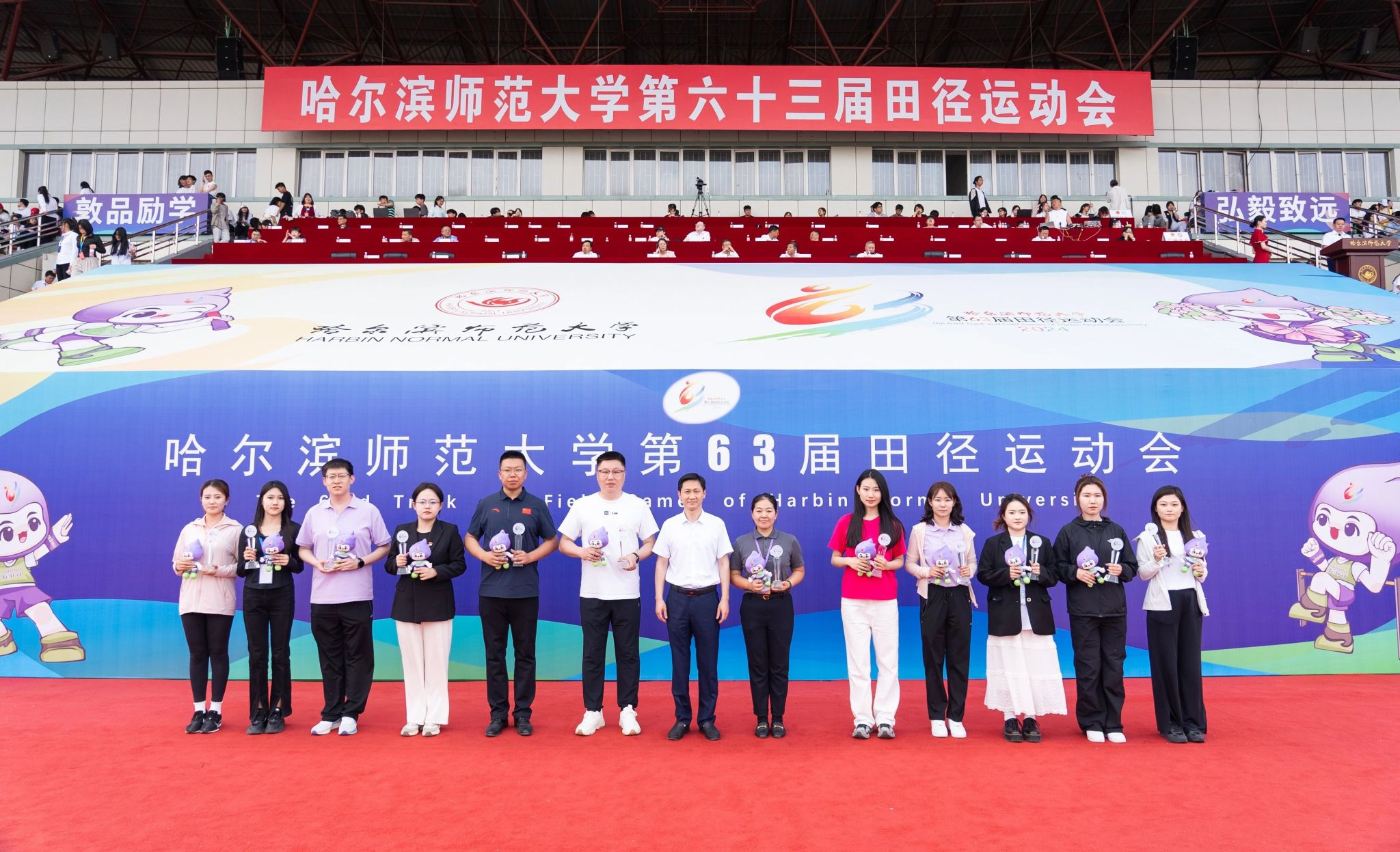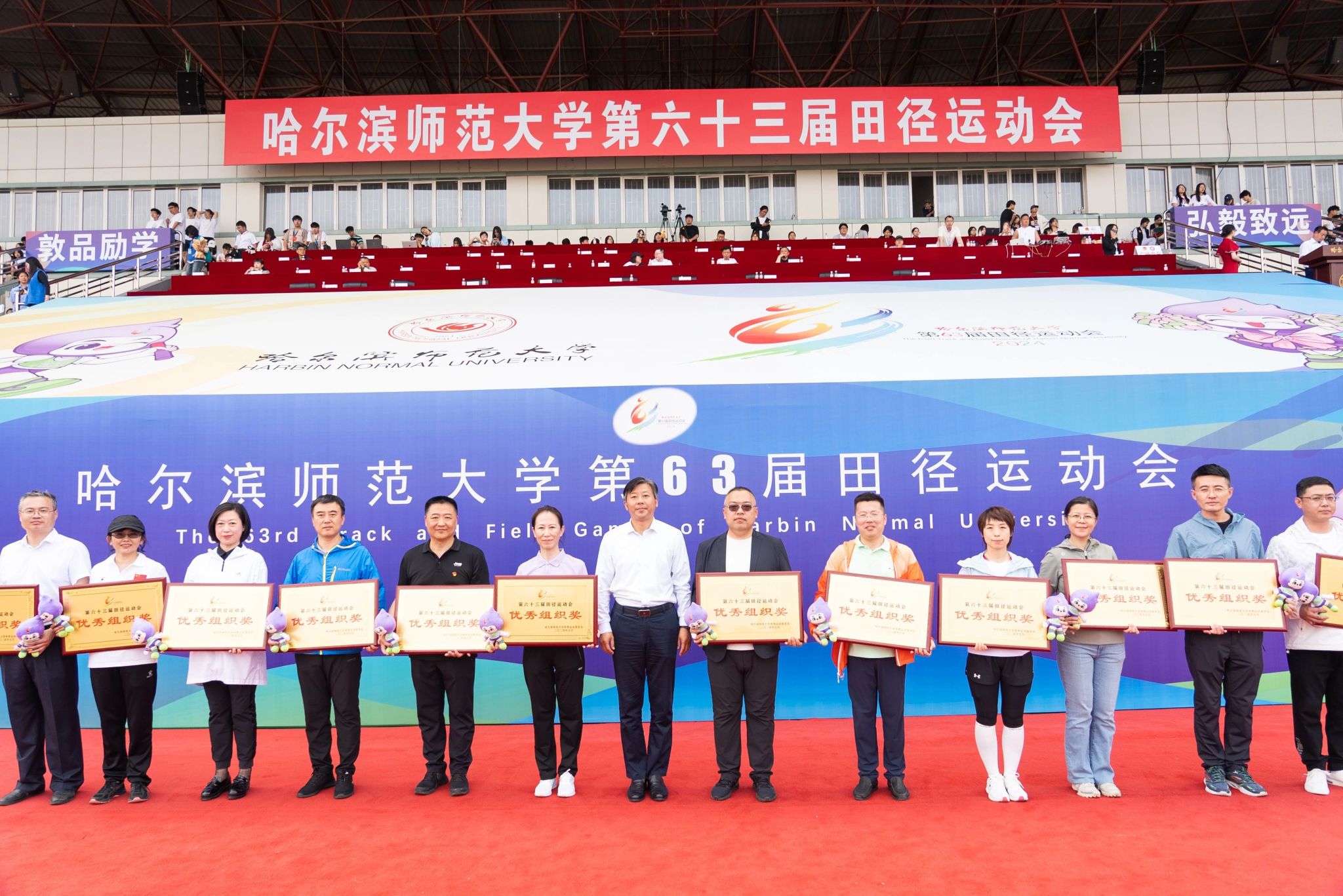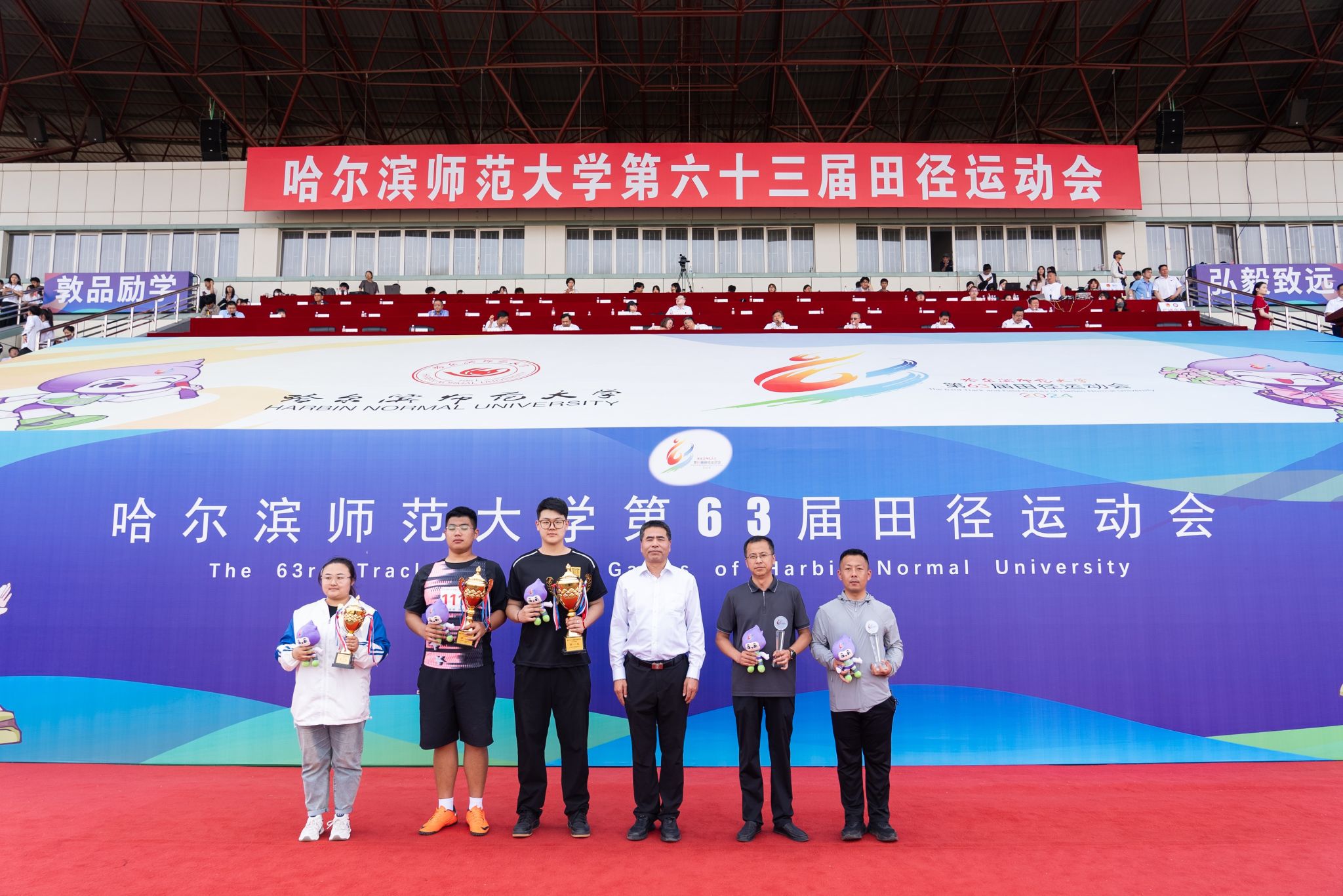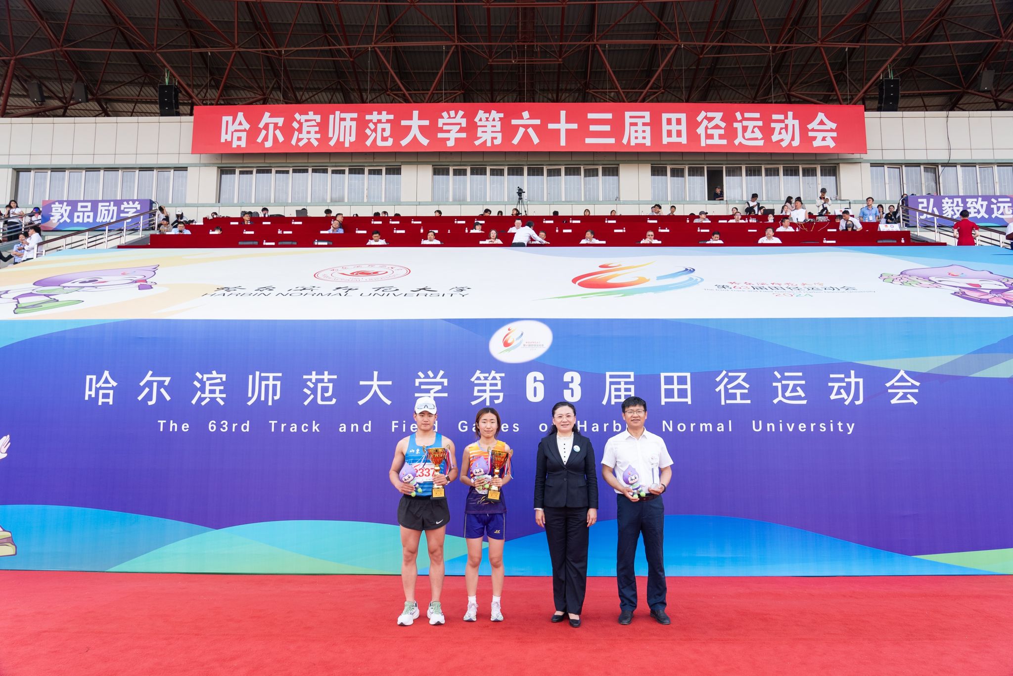 孙立军在闭幕词中指出,本届田径运动会共有来自24个单位的741名师生运动员参加了32个比赛项目。全体裁判员坚持原则、公正执裁,全体运动员顽强拼搏、奋勇争先,全体工作人员恪尽职守、认真负责,展现了哈师大人奋发向上、知行合一的良好精神风貌。