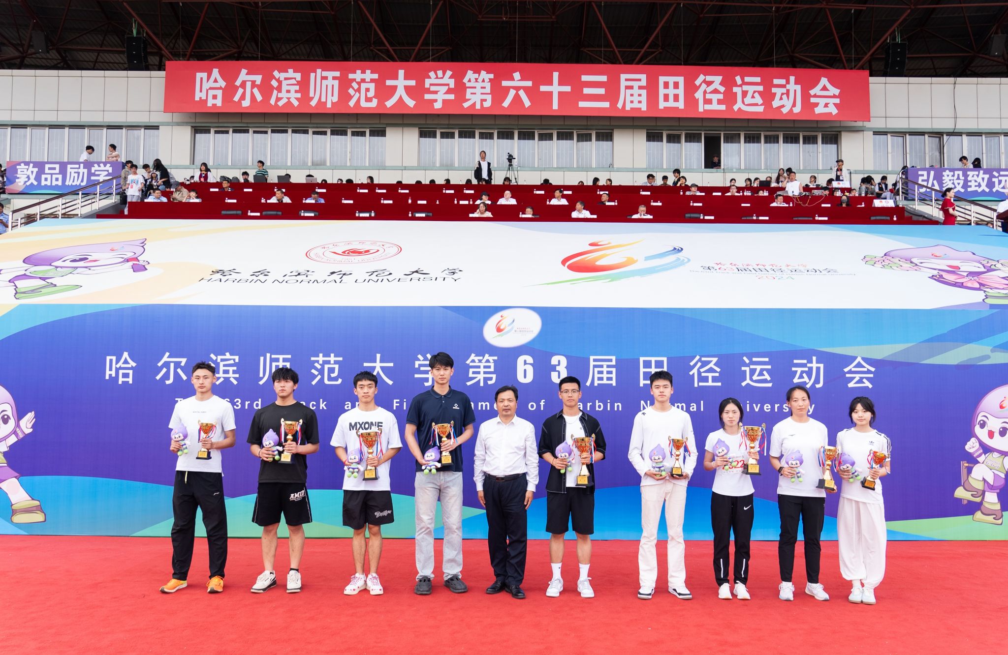 孙立军表示,运动会即将闭幕,但它带给我们的快乐、成长和收获将永远镌刻在我们的生命里,成为我们的精神养分和动力源泉。希望大家继续保持这种体育精神、运动精神、进取精神和团结精神,以更加昂扬的斗志、更加振奋的精神投入到今后的学习、工作和生活中,为建成“国内一流师范大学”矢志奋斗,为龙江高质量振兴发展、建设教育强国贡献我们的智慧和力量!