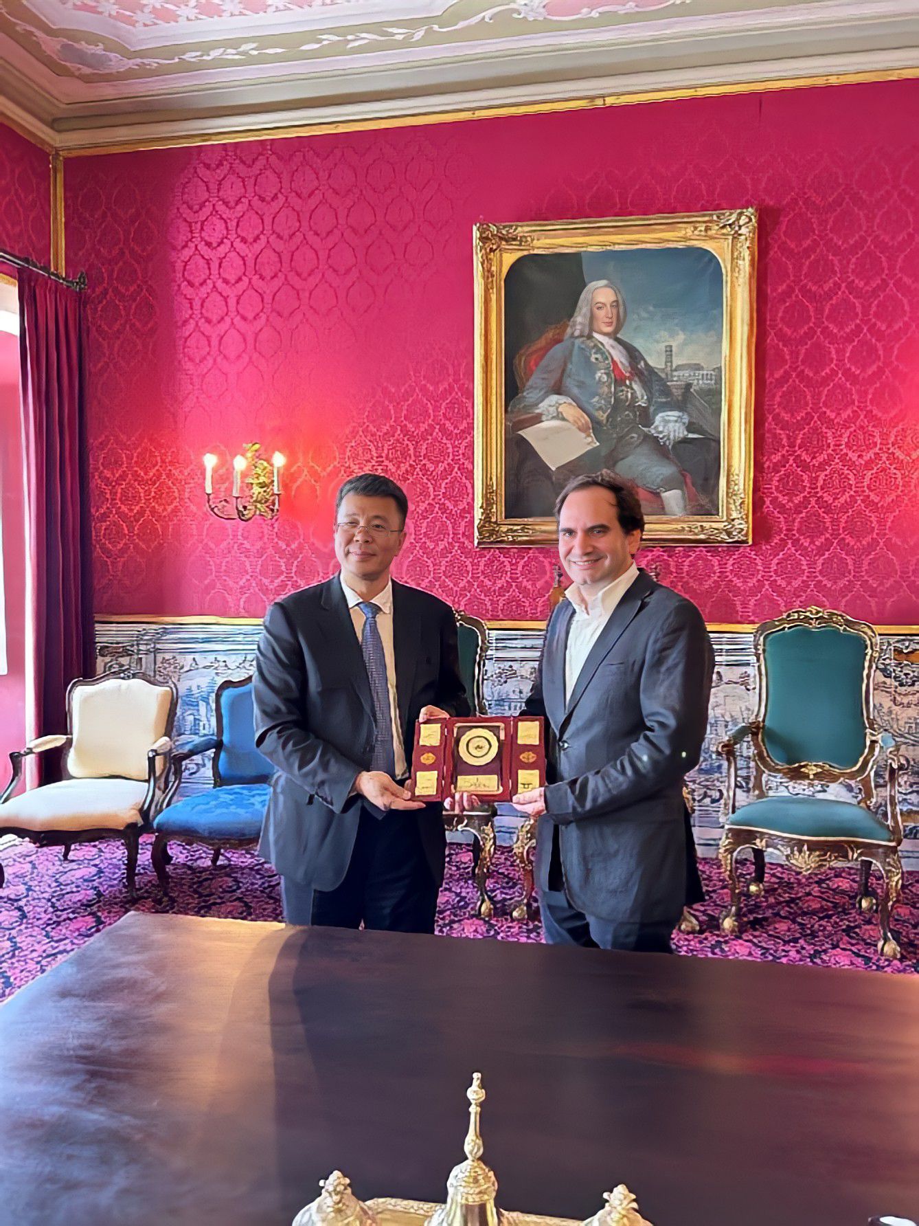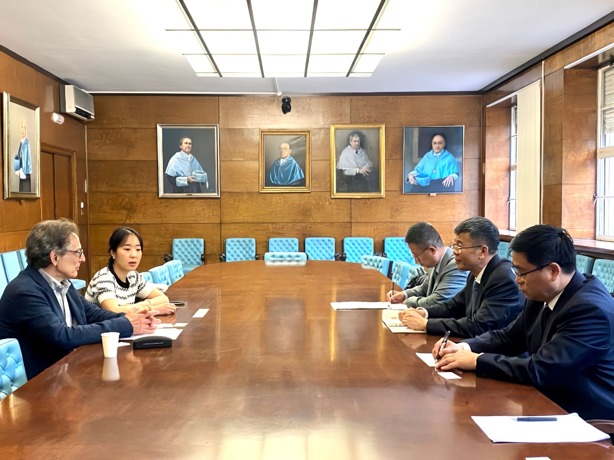6月13日,代表团访问了葡萄牙科英布拉大学,副校长希尔瓦、国际处主任西尔维亚等接待了代表团一行,并举行会谈。双方主要就联合培养我校葡语专业本科生项目进行商讨,同时就教师互访、科研合作等议题进行充分协商并达成一致。