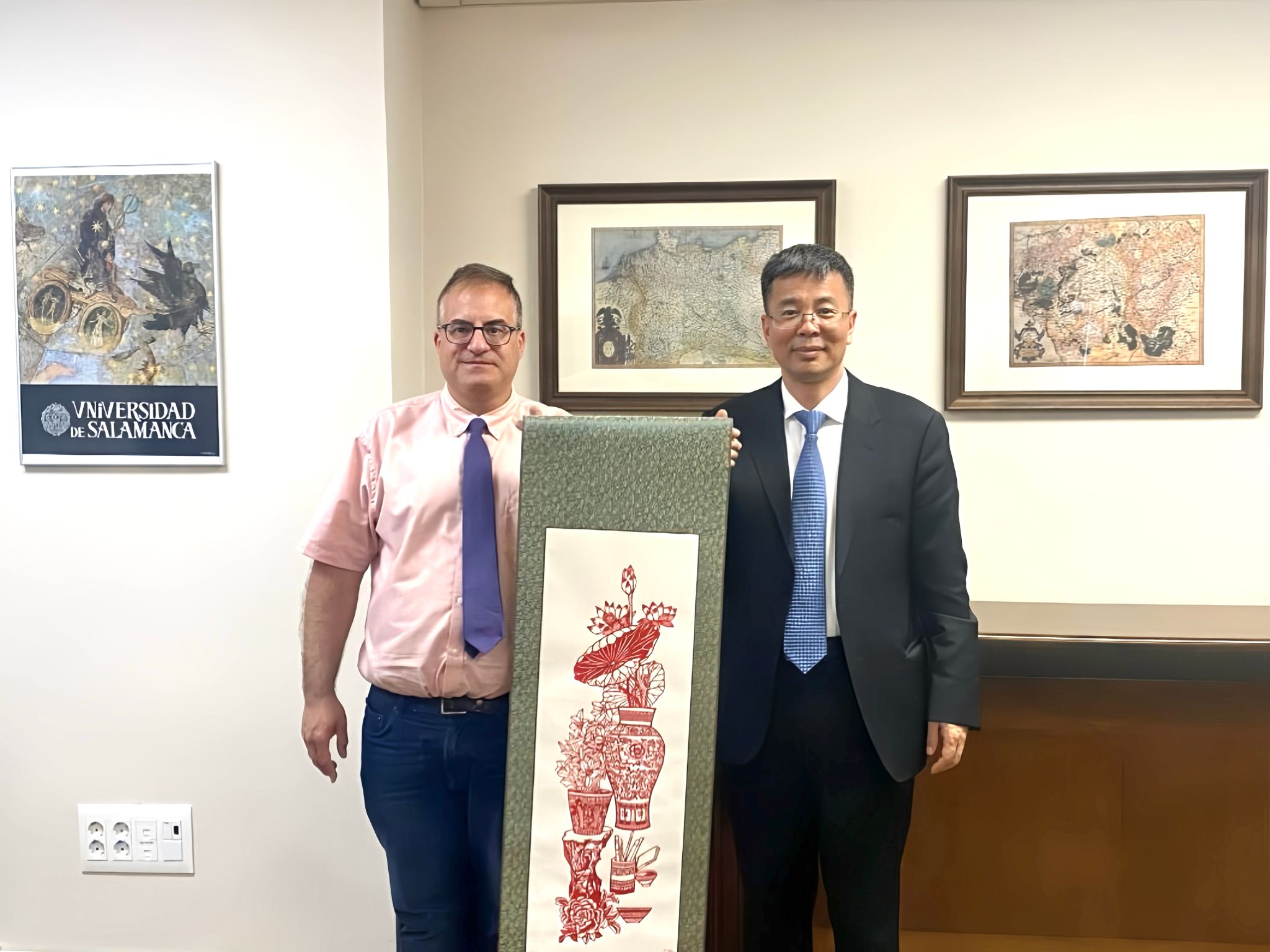 6月11日,访问西班牙萨拉曼卡大学期间,代表团与普利艾多副校长、国际课程部主管桑切斯等人进行会晤。普利艾多表示萨拉曼卡大学十分珍视同哈师大的合作关系,两校长达十年的合作,硕果累累,联合培养了170余名西班牙专业本科生。孙立军充分肯定了两校合作基础和取得的成绩,表达了在原有合作模式的基础上,开展本硕连读的培养模式建议。双方就此展开讨论,并在艺术史专业方面的合作达成了共识。同时,双方还就萨拉曼卡大学为我校学生提供网络授课,与我校教学资源共享,合作建立数据库以及向我校输送西班牙语外教,定期为我校西班牙语教师进行教学培训等议题展开了深入探讨。