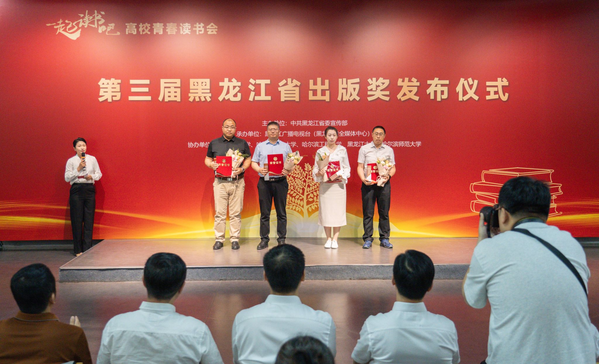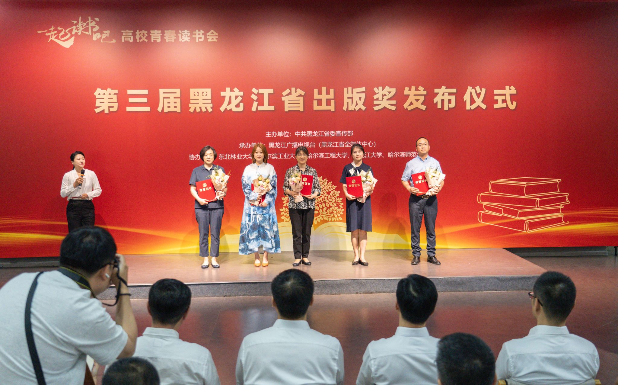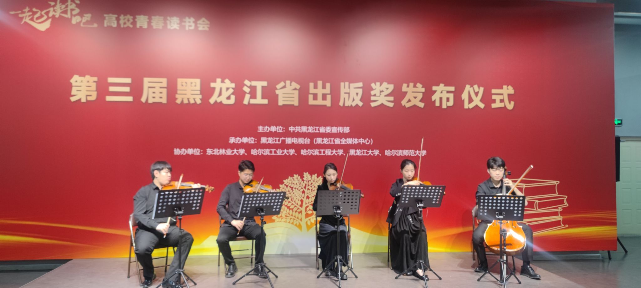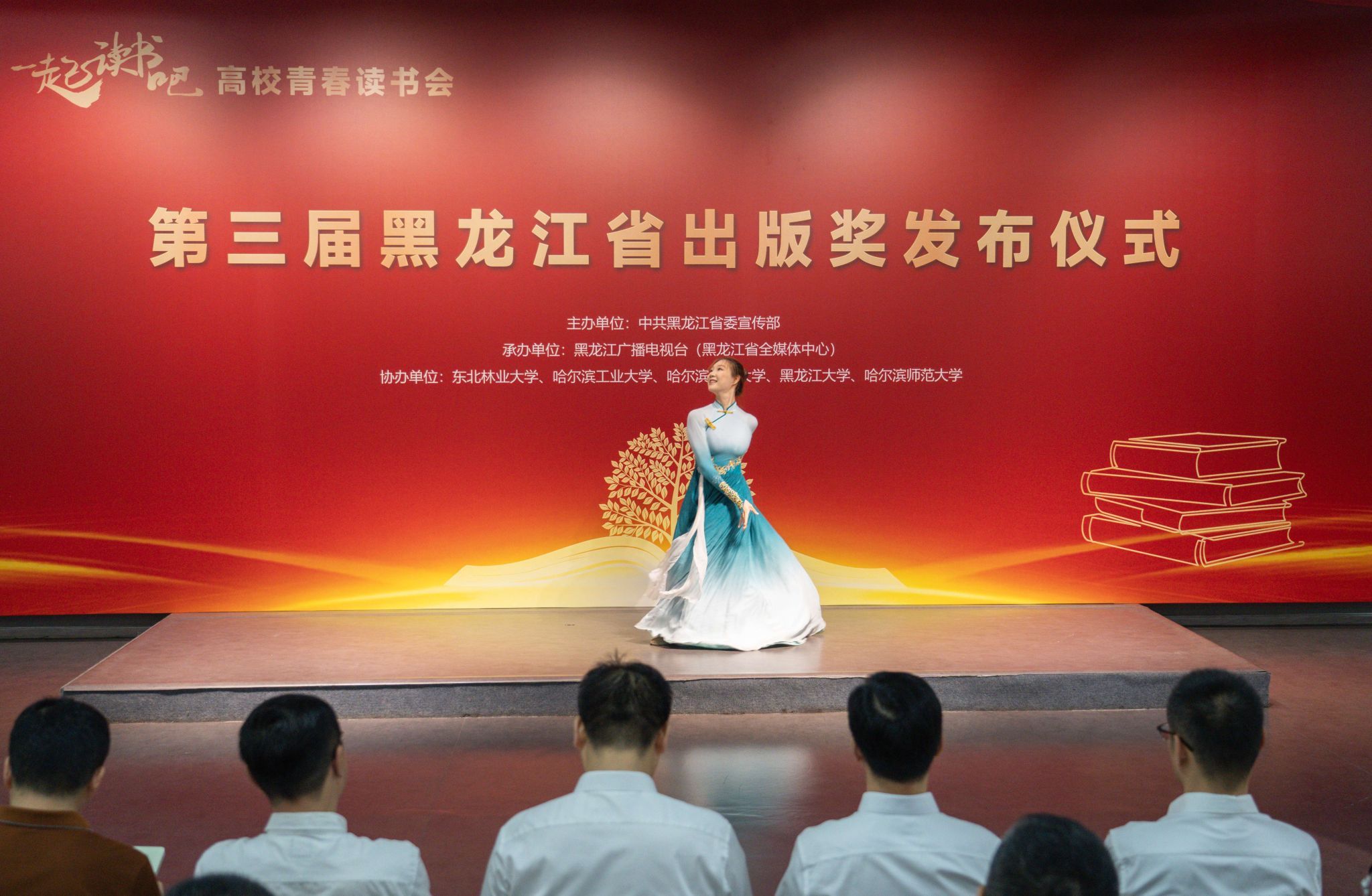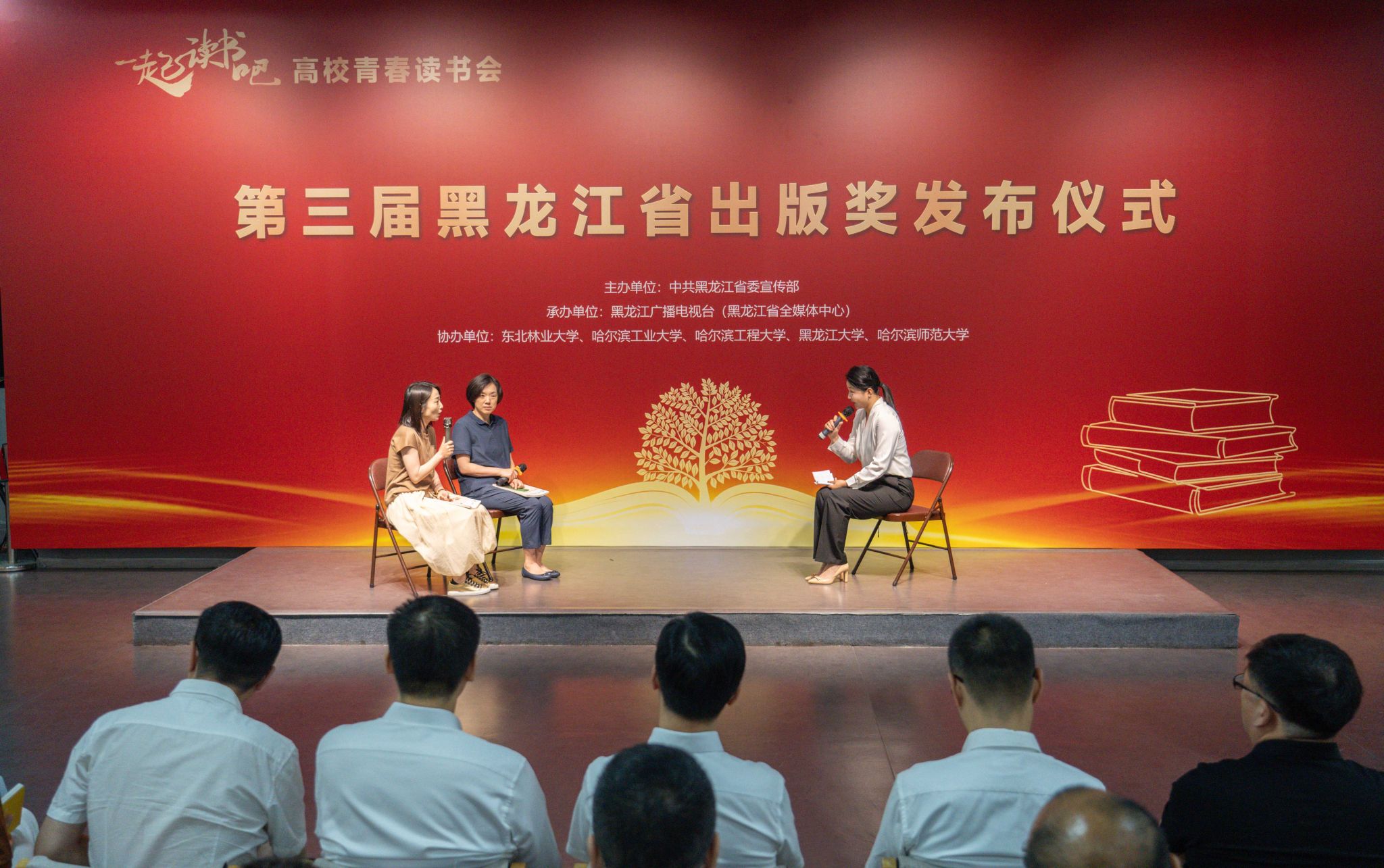 (李敏佳/文)7月2日上午,“一起读书吧”——高校青春读书会暨第三届黑龙江省出版奖发布仪式第四场活动在我校美术馆举行。本次活动由中共黑龙江省委宣传部主办,黑龙江广播电视台(黑龙江省全媒体中心)承办,哈尔滨师范大学等高校协办。