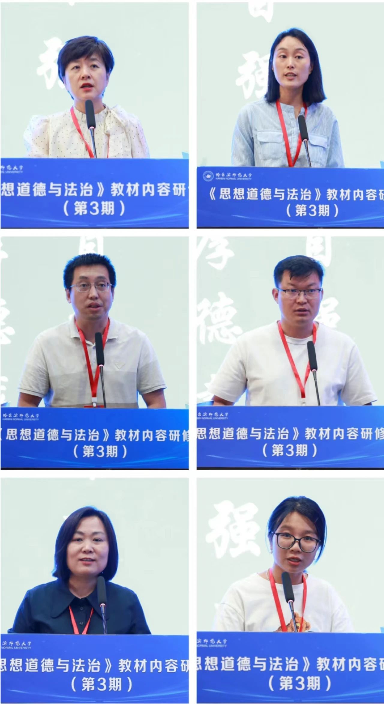 专题辅导报告分别由清华大学马克思主义学院副院长、国家教材建设重点研究基地副主任吴俊,《思想道德与法治》教材内容研修班承办方班主任、哈尔滨师范大学马克思主义学院党委书记宋佳东主持。 研修期间,研修班还组织全体研修学员赴哈尔滨师范大学校史馆、文博馆和马克思主义学院开展了实践教学,围绕《“思想道德与法治”教材体系向教学体系的转化》这一主题进行了分组研讨。