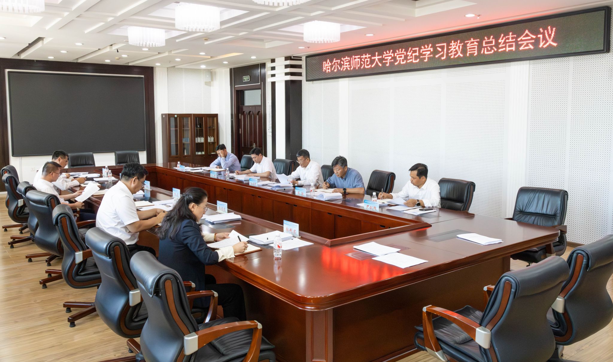 会议要求,各基层党组织和全校党员干部要扎实推动党的纪律教育常态化长效化。要贯彻落实《关于推进党纪学习教育常态化长效化的意见》,固化党纪学习教育好的经验做法,常态化推进各基层党组织和全校党员学纪知纪明纪守纪,建立经常性和集中性相结合的纪律教育机制,常态化加强警示教育。要坚持用改革精神和严的标准管党治党,深入推进全面从严治党,一体推进不敢腐、不能腐、不想腐,建立健全容错纠错机制,坚持严管厚爱相结合,树立重实干实绩鲜明导向,坚持严的基调正风肃纪反腐,营造良好育人环境,扎实推进勤廉师大建设,让干事创业、崇勤尚廉成为哈师大的良好风尚。