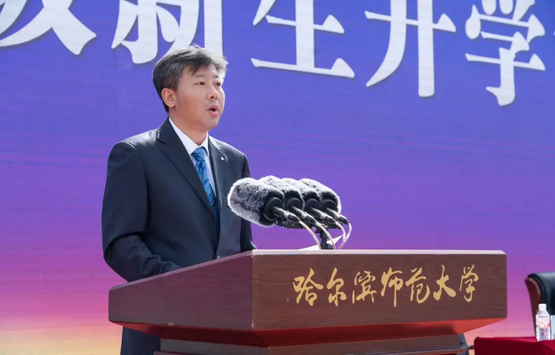 “同学们,在这个大有可为且必须大有作为的时代,你们即将在哈师大开启新的人生征程。希望你们从入学伊始就志存高远,脚踏实地,做有理想、敢担当、能吃苦、肯奋斗的新时代哈师大人,用家国情怀点燃青春激情,以奋斗之姿唱响青春之歌,坚定不移听党话、跟党走,努力成长为堪当民族复兴重任的栋梁之才!”围绕哈师大人如何在充满机遇的时代彰显青年一代的担当,校长蒋鲲从四个方面对同学们进行勉励。