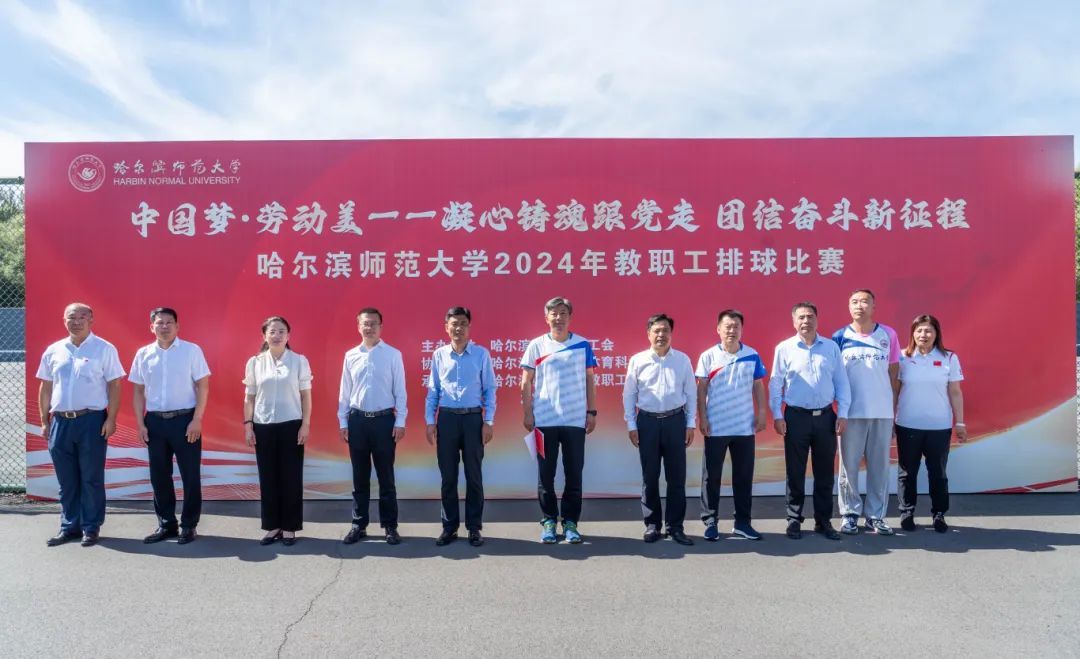 (万浩然/文)为推动全民健身活动,丰富校园文化生活,提高职工身体素质,增强全体教职工的团队意识和凝聚力,9月12日,我校举办“中国梦·劳动美——凝心铸魂跟党走,团结奋斗新征程”哈尔滨师范大学2024年教职工排球比赛。本次比赛由校工会主办、体育科学学院协办、教职工排球协会承办。校长蒋鲲出席开幕式并致辞。党委常委、副校长尹剑锋,党委常委、副校长徐国峰,党委常委、副校长李岗,党委常委、副校长李林,党委常委、组织部部长刘可心,党委常委、宣传部(教师工作部)部长张艳君,体育科学学院负责人,校工会全体人员,各参赛单位负责人、教职工及裁判员参加开幕式。开幕式由工会常务副主席杨世君主持。