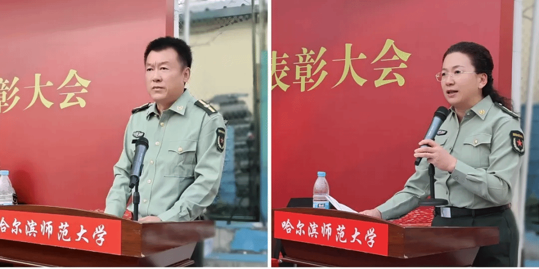 张艳君宣读了军训师关于江南校区的表彰决定。与会领导为军训期间表现突出、成绩优异的个人及集体颁发获奖证书和奖牌。