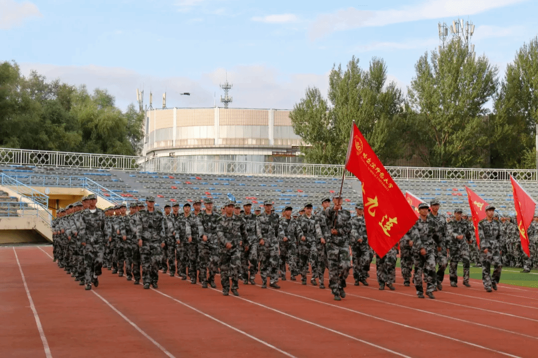 李岗在讲话中表示,军训即将结束,希望全体同学把训练场上学到的严格规范、一丝不苟、百折不挠精神长久坚持下去。“雄关漫道真如铁,而今迈步从头越”,重整衣装,向着明天、向着未来、向着学校“国内一流师范大学”建设目标再出发。