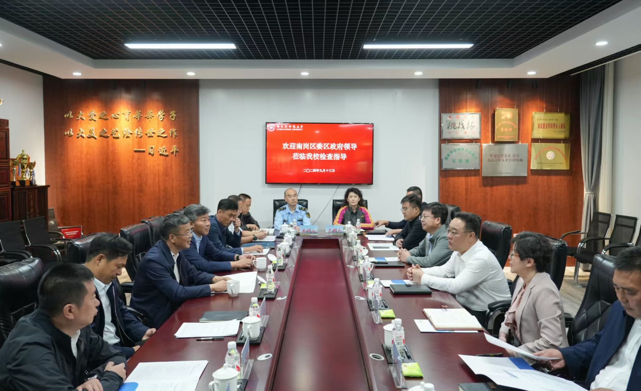 (姜思哲/文)9月13日下午,哈尔滨市南岗区委书记李思远一行来我校江南校区调研。党委书记孙立军,校长蒋鲲,党委常委、副校长尹剑锋,党委常委、副校长徐国峰及学校和南岗区有关部门负责同志参加调研。
