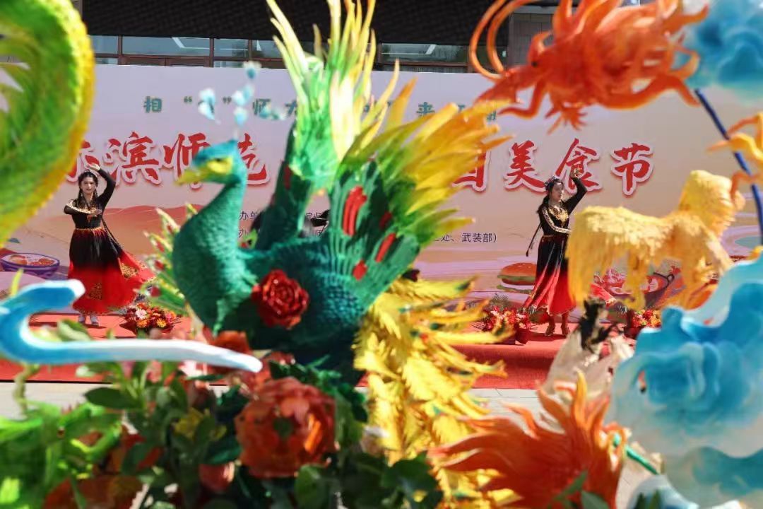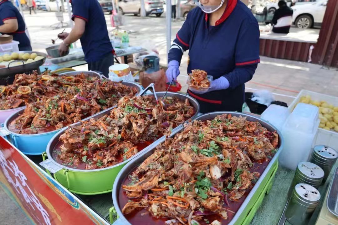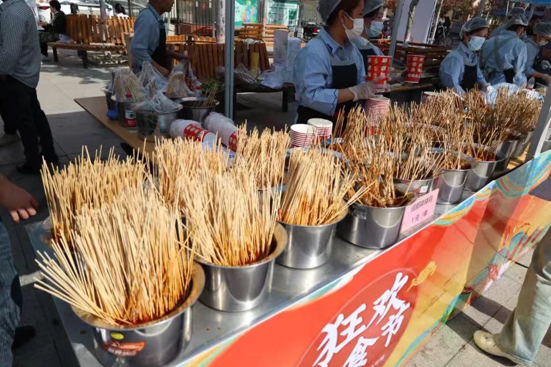 美食节现场展销了超百种地方小吃和特色美食,烤全羊、铁板鱿鱼、卤味、烧烤、冰糖葫芦、特色糕点等,每一种食物都承载着深厚的美食文化底蕴,让师生在品尝美味的同时感受中华美食文化的博大精深。同时,本次美食节特别设置了精彩纷呈的歌舞才艺表演,食堂师傅和学生们自编自导的“拉面成丝”才艺展示,“面吹气球”的创意表演等节目轮番上演,展现了中华优秀传统文化的独特魅力以及中华美食的精湛工艺,活动现场人群攒动,师生大饱“眼”福。