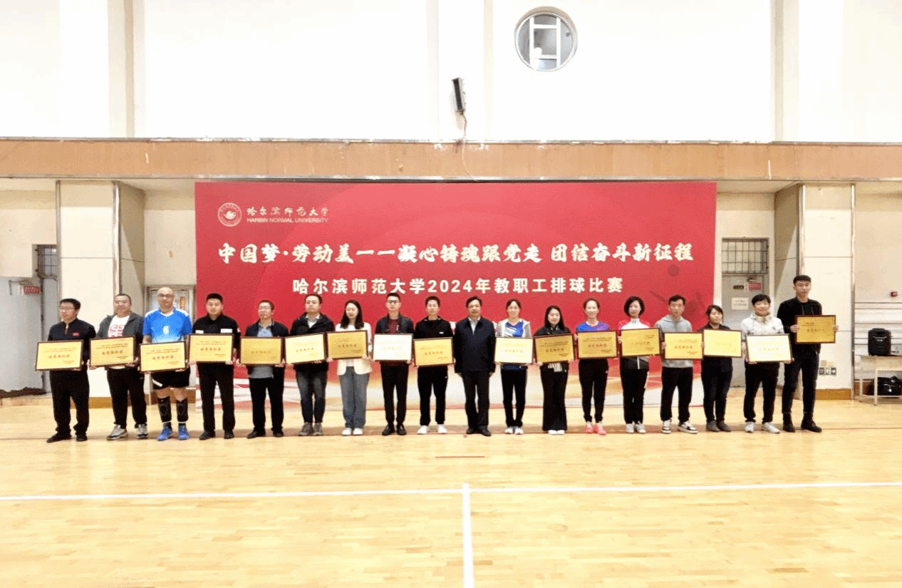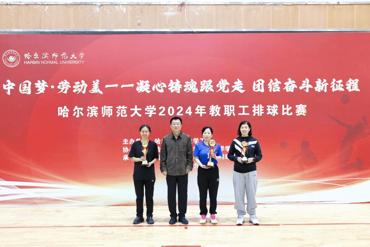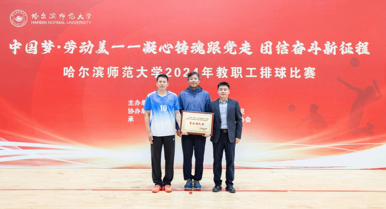 (万浩然/文)9月25日,“中国梦·劳动美——凝心铸魂跟党走 团结奋斗新征程”哈尔滨师范大学2024年教职工排球比赛在我校松北校区排球馆圆满落下帷幕。比赛历时6天80余场次,共有来自全校19个基层工会36支代表队、300余名教职工参加比赛。决赛之后举行了颁奖仪式,校长蒋鲲,党委常委、副校长尹剑锋,党委常委、副校长李岗,党委常委、宣传部(党委教师工作部)部长张艳君分别为获得男子组、女子组前八名,最佳球队奖、优秀组织奖、优秀裁判员颁奖。工会常务副主席杨世君主持颁奖仪式。