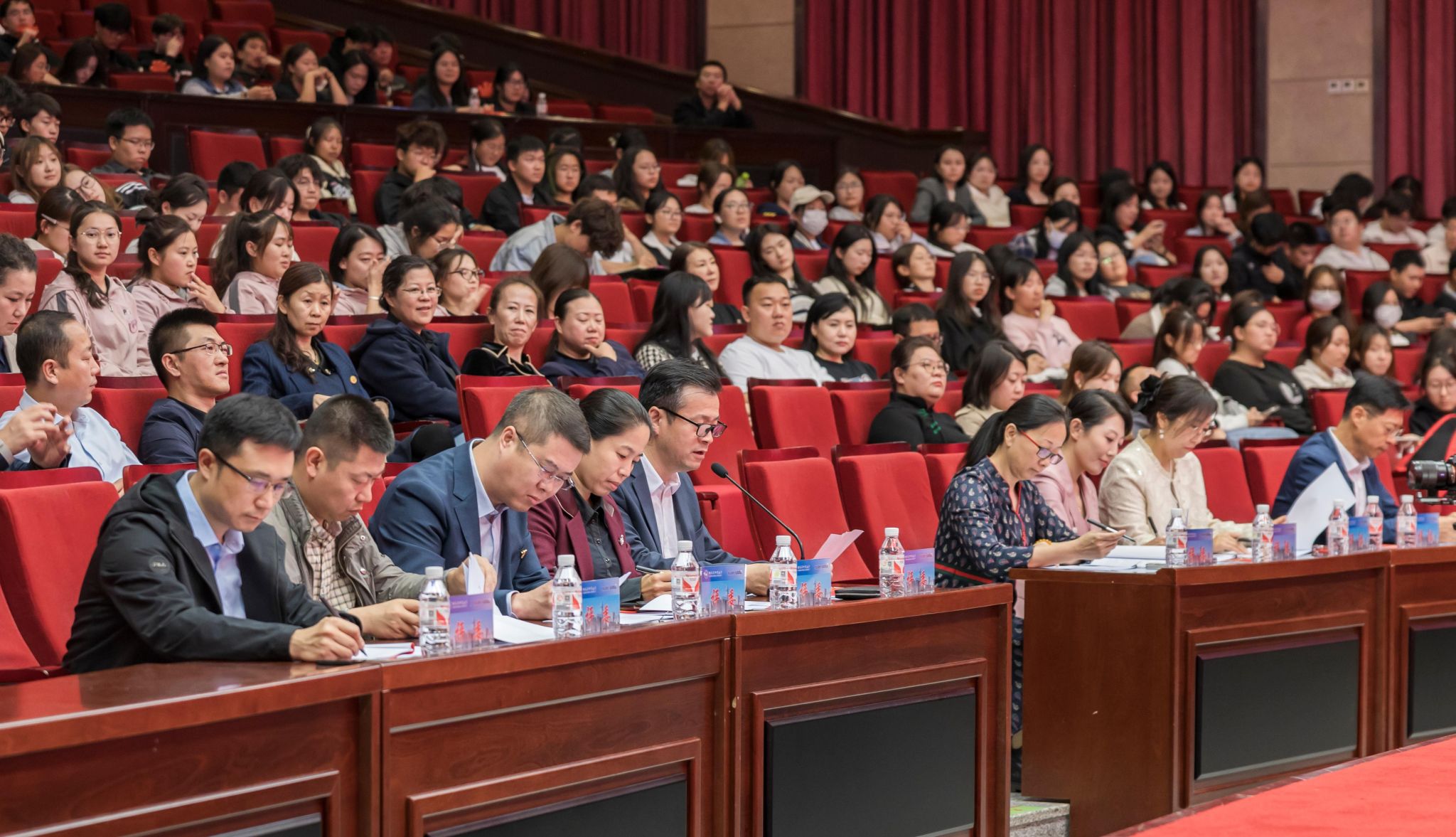决赛现场气氛浓郁,参赛教师的经典演绎,引领现场师生沉浸其中,或激情高涨,或神情凝重,或遐思飘然,时常出现掌声雷动、呐喊助威的场景。现场师生观众纷纷表示,这是一场别开生面的视听享受、受益匪浅。评委评分实行实名制,9名评委严格按照评分标准现场打分,评分过程设置合议环节,参赛教师得分为去掉一个最高分和一个最低分后的平均分,充分保障决赛严肃公平。最终评选出一等奖3名,二等奖6名,三等奖8名。
