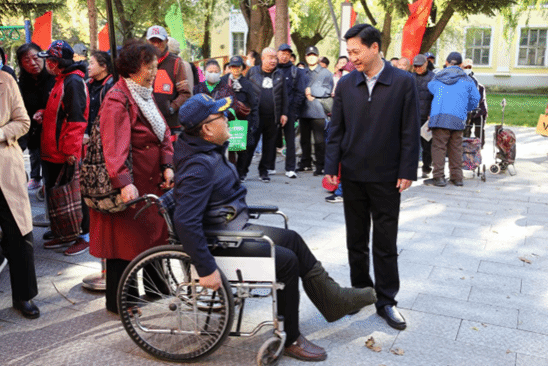 校党委副书记王辉前往养老院、老寿星家中、趣味比赛现场看望慰问离退休老同志,并代表全校师生向老同志送上节日祝福和美好祝愿。