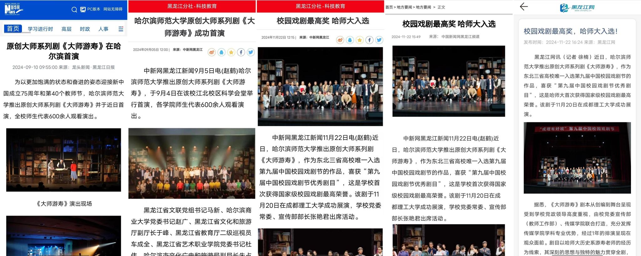 剧目从创编到排演受到国家级、省级媒体高度关注,先后被中国教育电视台、新华网、黑龙江日报、中新网、中国教育在线等多家媒体广泛报道。