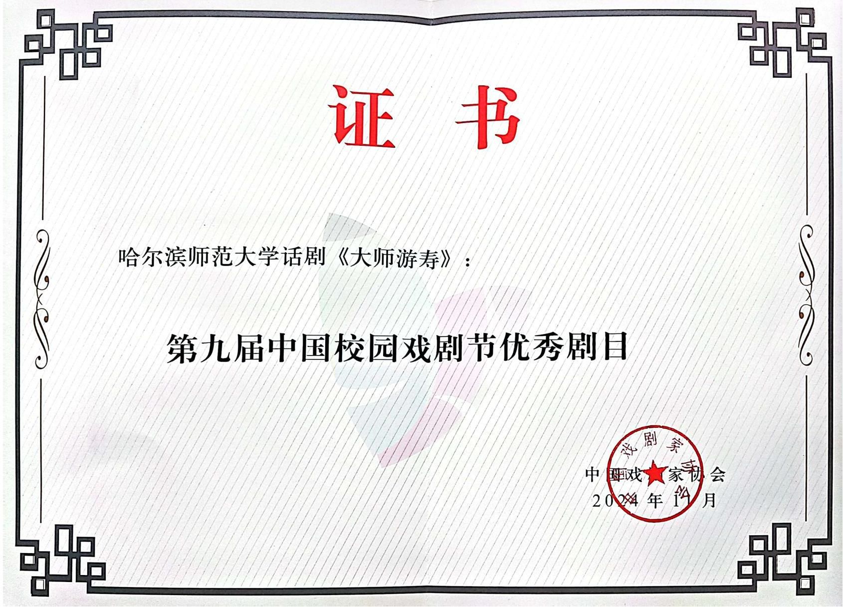 师大有戏,成都相剧。近日,哈尔滨师范大学推出原创大师系列剧《大师游寿》,作为东北三省高校唯一入选第九届中国校园戏剧节的作品,喜获“第九届中国校园戏剧节优秀剧目”,这是学校首次获得国家级校园戏剧最高荣誉。该剧于11月20日在成都理工大学成功展演。学校党委常委、宣传部(党委教师工作部)部长张艳君参加活动并代表学校领奖。