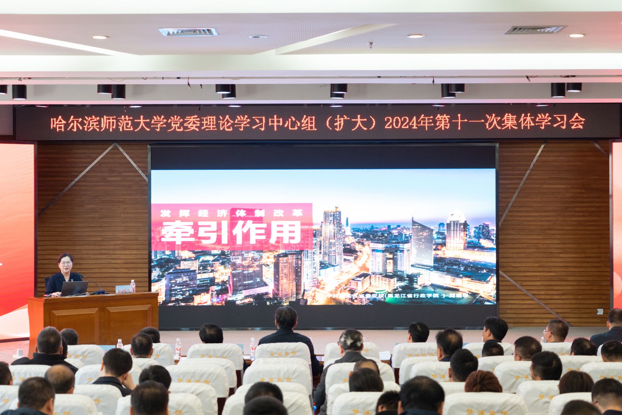 11月8日上午,学校召开党委理论学习中心组(扩大)2024年第十一次集体学习会,专题学习党的二十届三中全会精神。学校邀请省委宣讲团成员、省委党校刘瑞华教授作题为《深入学习党的二十届三中全会精神——发挥经济体制改革牵引作用》的专题辅导报告。校党委书记孙立军主持会议并讲话,校党委理论学习中心组成员参加学习,学校党的二十届三中全会精神教育培训班全体学员、学校2024年年轻干部教育培训班全体学员列席会议。