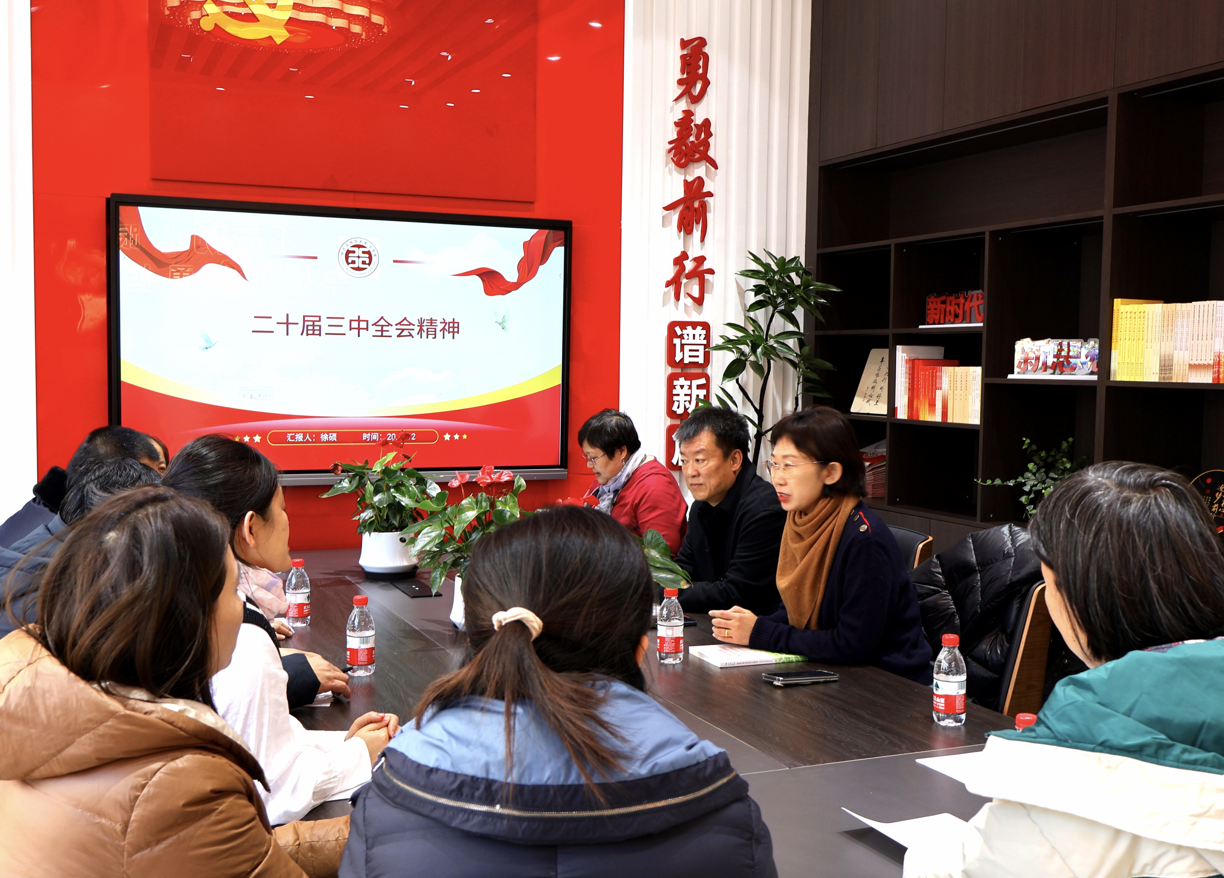 随后,法学专业教师党支部于党团活动室开展讲党课活动。党课由支部书记徐硕老师主讲,她从《决定》提出300多项重要改革措施、进一步全面深化改革贯彻六条原则、关于经济和民生领域改革、关于深化教育科技人才体制机制改革和关于党的领导和党的建设制度改革等五个方面分享学习党的二十届三中全会精神的心得体会。李岗与支部党员围绕党课内容进行交流。