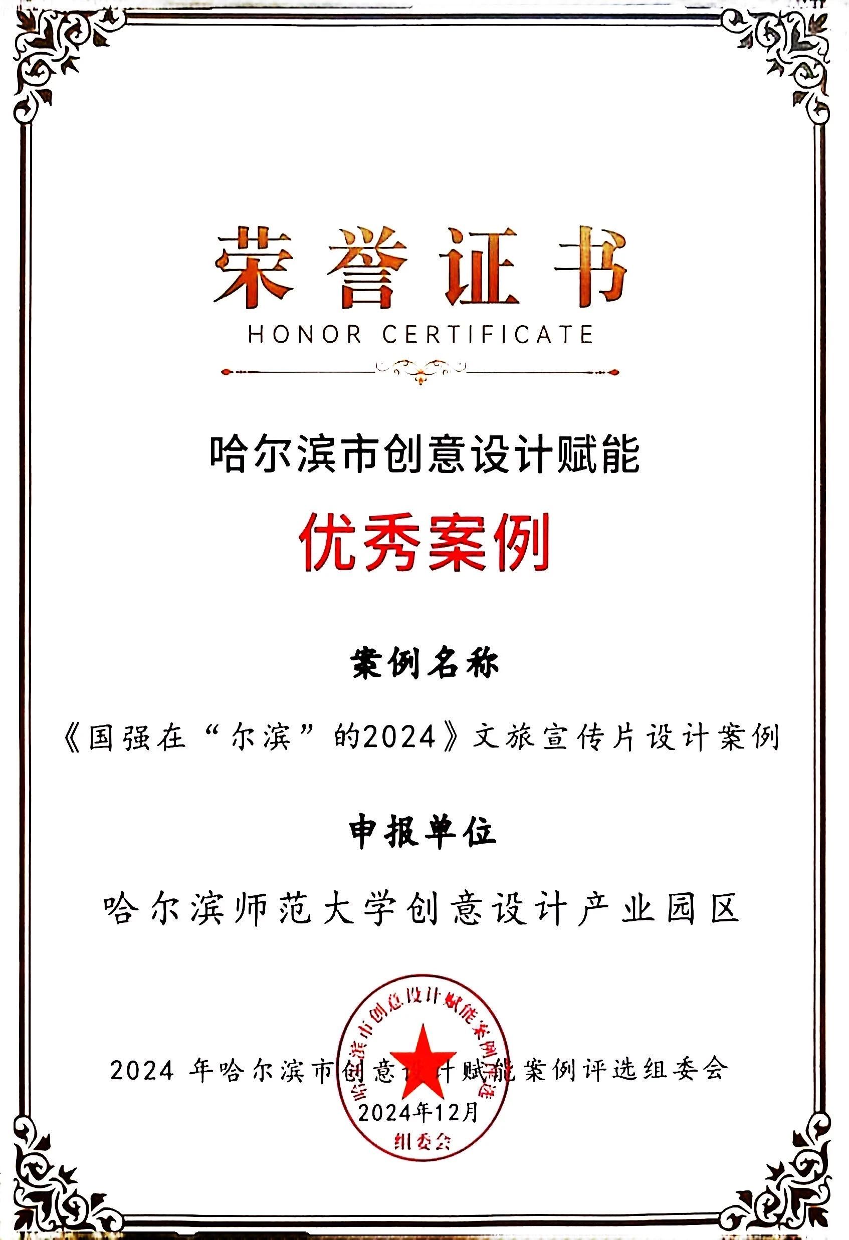 “国强在尔滨的2024文旅宣传片案例”由我校创意设计产业园入驻团队教师裴佳兴担任策划、徐龙稷担任导演(项目又名《国强化身“老钱”、畅享尔滨2024》),自2024年在全网上线后,先后登陆人民网、新华网等中央媒体、新浪、搜狐、腾讯等门户网站和抖音、b站等短视频平台,宣传片全网曝光量破亿,播放量破千万,转发、点赞累计突破数十万次,尤为值得关注的是来自网友的上万条肯定性评论,其中“深受感动”“看到最后被泪目”成为出现频率最高的热词,形成了文旅宣传片中少见的全网“泪目”现象,实现了“家国情”融入“文旅景”,为哈尔滨2024年夏季文旅的品牌传播和推广做出突出贡献,获得中国电视艺术家协会颁发的第17届“中国旅游电视周”旅游宣传片类“最佳作品奖”等国家级奖项,赢得了省市领导的高度赞誉。