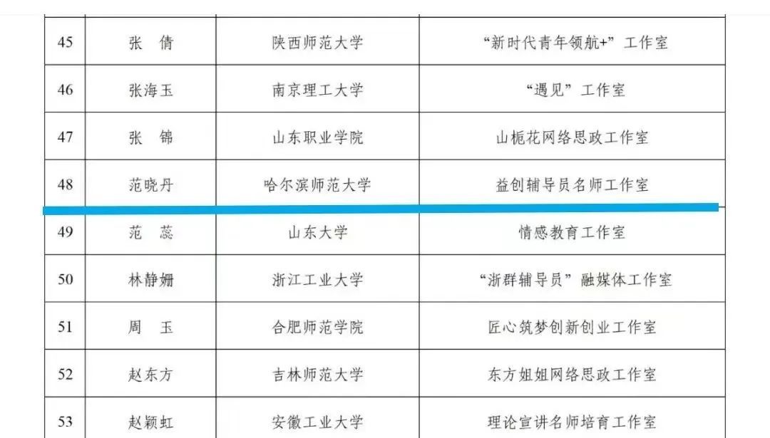 近年来,在学校党委的高度重视下,我校辅导员队伍建设卓有成效,辅导员的整体理论水平、科研功底和实践能力不断提升,专业化、职业化发展得到有效保障。先后涌现出“全国最美高校辅导员”1人、“全国高校辅导员年度人物”1人、“全国高校辅导员年度人物”提名奖1人、“全国辅导员年度人物”入围奖4人,“全国高校辅导员素质能力大赛一等奖”1人、“全国高校辅导员素质能力提升骨干训练营‘特别表现奖’”1人;获批教育部思政精品项目2项、教育部辅导员专项课题4项,入选全国高校思想政治工作优秀论文3篇、优秀案例3篇。获批省级辅导员名师工作室2个,推出“全省最美高校辅导员”4人、“全省最美高校辅导员提名奖”1人。展望未来,学校将紧紧围绕《哈尔滨师范大学大学生思想政治教育“112349”工作模式实施方案》总体要求,持续深化“三全育人”综合改革试点工作,强化思想引领、加强榜样示范,奋力实现我校学生工作内涵式建设,进一步推动学校事业高质量发展。