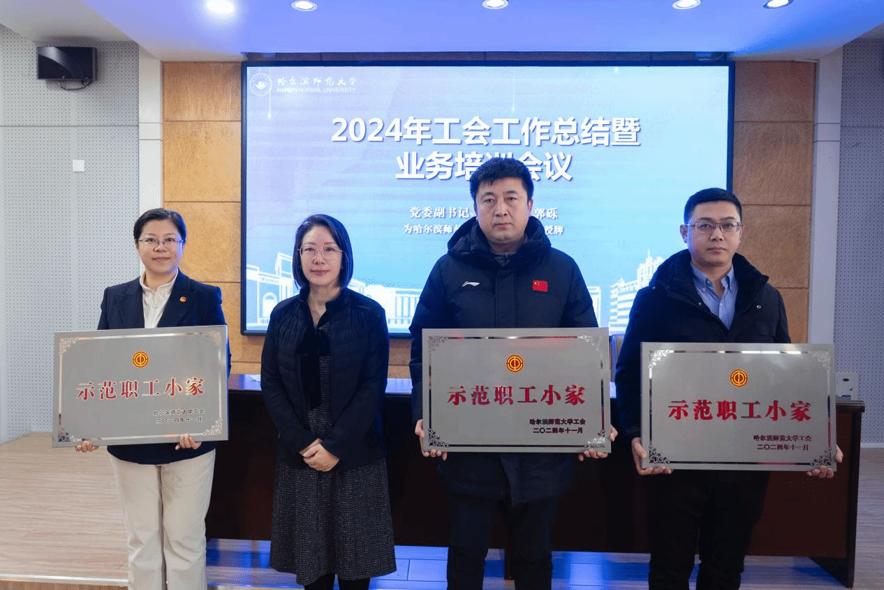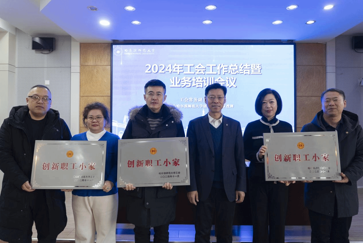 与会领导为“职工小家”建设有特色、有温度、有情怀的基层工会进行授牌。美术学院工会、物理与电子工程学院工会、东语学院工会荣获示范“职工小家”称号;马克思主义学院工会、化学化工学院工会、斯拉夫语学院工会、传媒学院工会、教育科学学院工会荣获创新“职工小家”称号。