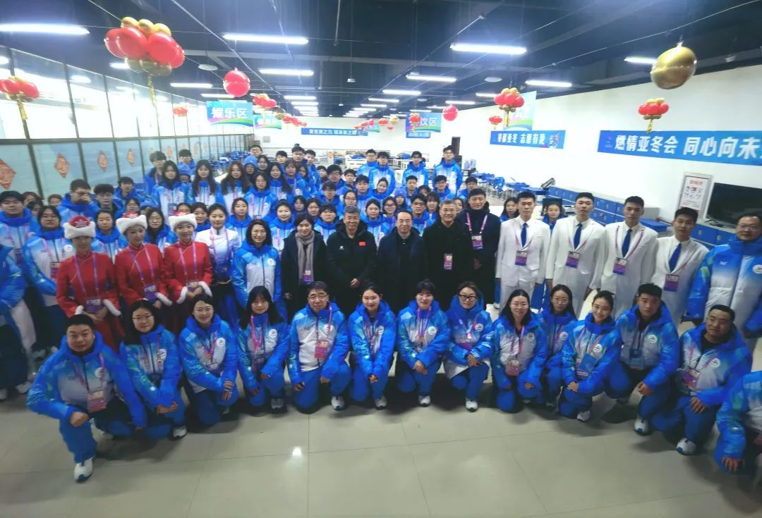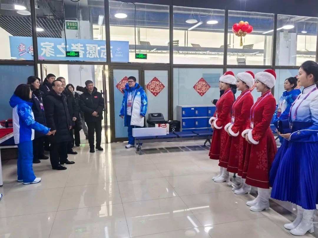 黑龙江省冰上训练中心场馆(群)是由哈尔滨师范大学担任志愿者经理的竞赛场馆,本届亚冬会共有短道速滑、花样滑冰、大道速滑三项赛事在此举办,共产生亚冬会冰上项目32枚金牌中的27枚,占冰上项目奖牌数84%。调研组一行现场察看了观众服务、媒体转播、贵宾接待、志愿者之家等点位志愿者工作情况,详细询问了点位具体工作流程,并向志愿者师生致以新春问候。