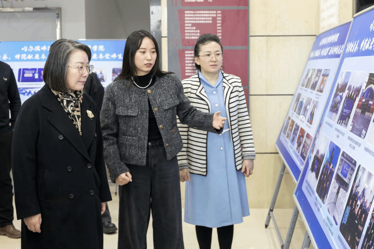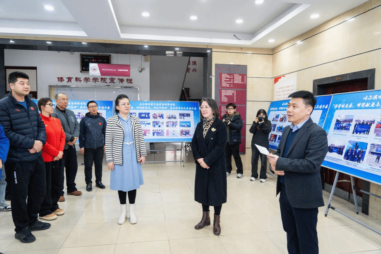 教师代表邓雪峰、战立富以及学生代表孙鸿铭、刘淼分别分享参与亚冬会的切身感受。亚冬会志愿者教师代表黄楚唯对学院主题图片展进行详细讲解。