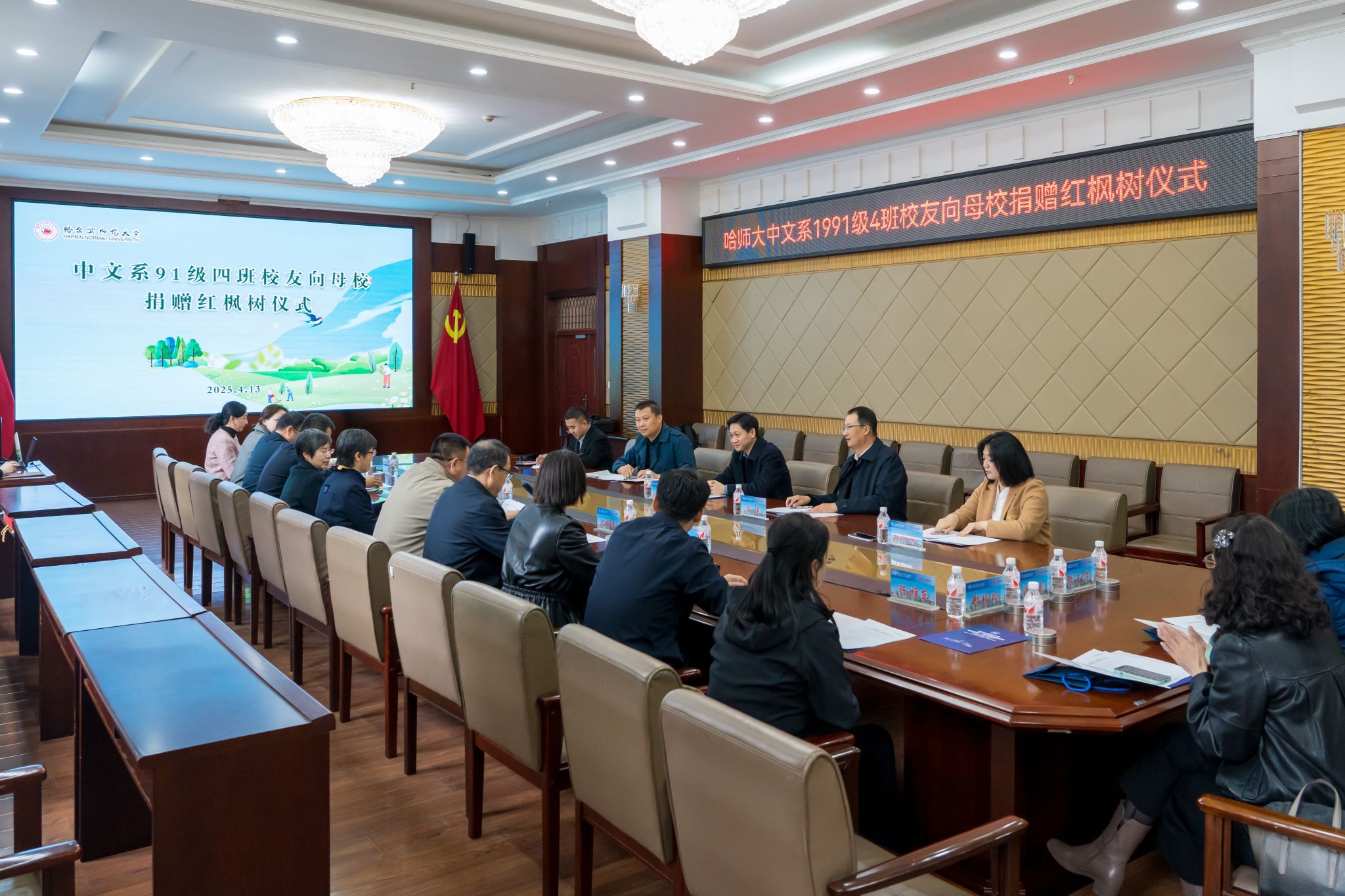 4月13日上午,我校中文系1991级4班校友向母校捐赠红枫树仪式在行知楼0107会议室举行。校党委副书记王辉参加仪式并致辞。党委常委、统战部部长、校友总会秘书长宿建,文学院相关负责同志及校友代表参加捐赠仪式。捐赠仪式由党委办公室副主任孙志成主持。