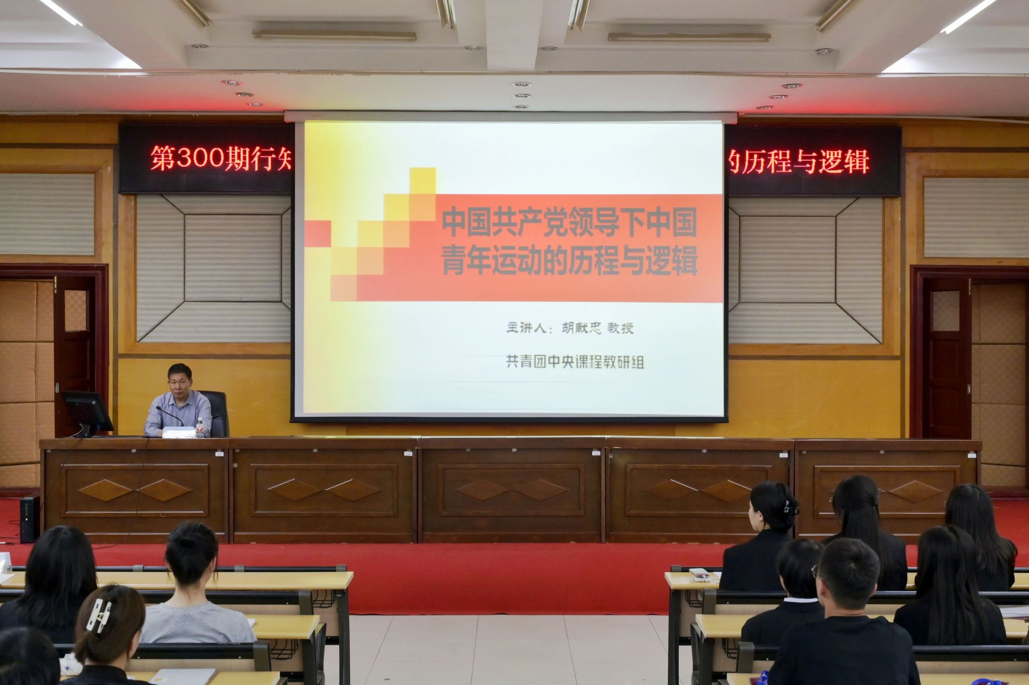 胡献忠教授以《中国共产党领导下青年运动的历程与逻辑》为题进行授课