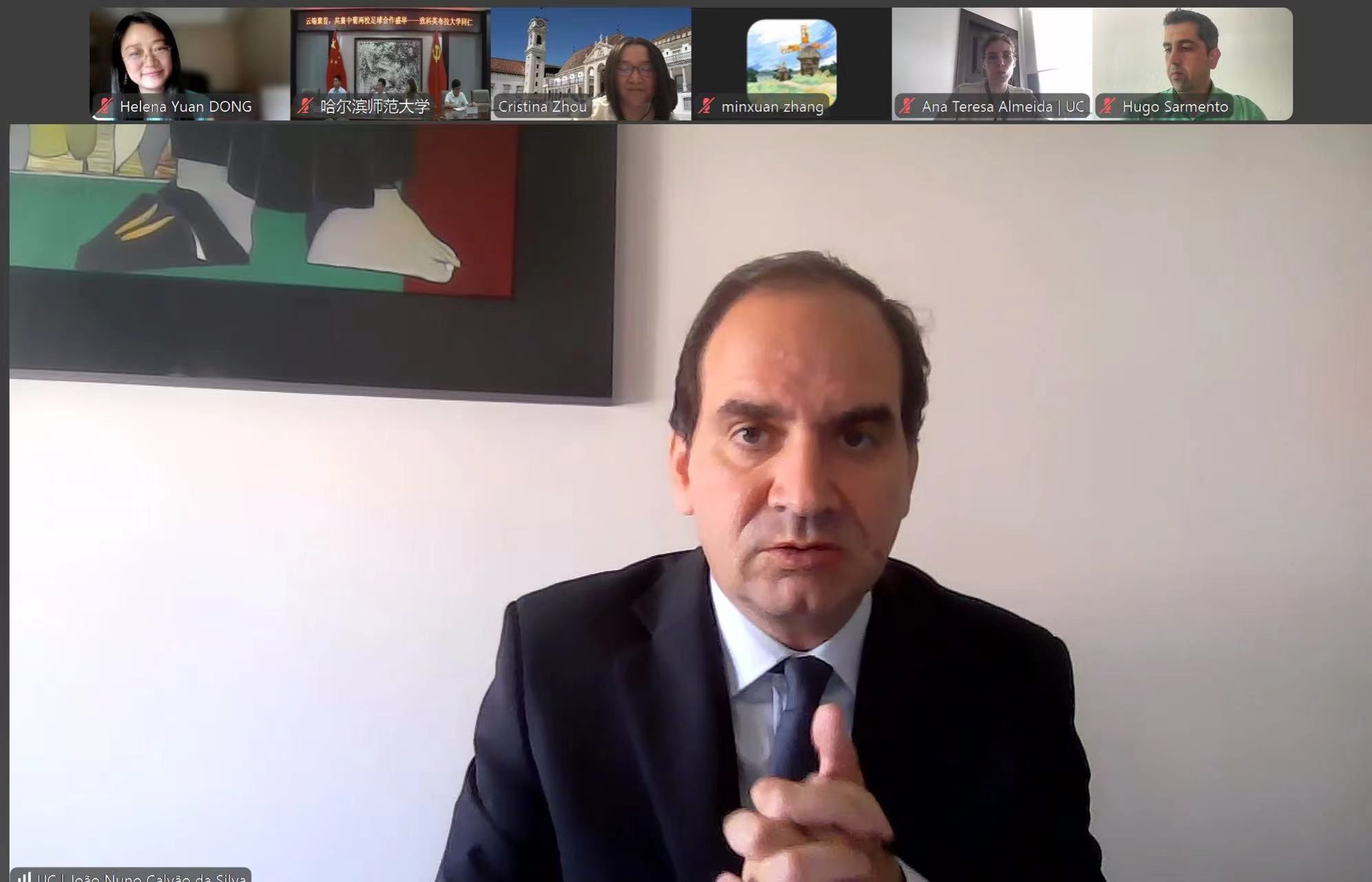 7月22日,我校与葡萄牙科英布拉大学线上座谈会顺利召开。我校党委常委、副校长李岗与葡萄牙科英布拉大学副校长若昂·努诺·卡尔旺·达席尔瓦出席会议并分别致辞。会议由国际交流合作处处长戴旭楠主持。