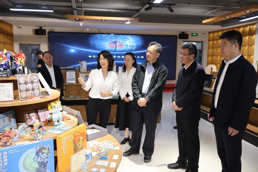 调研过程中,刘红亮一行了解了我校创意设计产业园区的发展历程、产业布局以及未来发展规划,着重关注了园区在影视精品创作、产品创新研发、赋能城市发展等方面取得诸多成果,在影视精品创作上,覆盖广泛领域,打造过硬精品,承接征兵宣传片《明日英雄》、哈尔滨道外区文旅宣传片《气贯中西·中华巴洛克》、特步儿童新年系列及主题 MV《大国少年》以及茅台、玉泉、安踏、vivo等国民品牌推介宣传片;在产品创新研发上,深度发掘地方特色,量身定制特色包装,为第三届黑龙江省旅发大会打造“呦呦”“逗逗” IP形象升级为黑河市城市名片,为伊春汤旺河林海奇石景区打造“森林家族”IP 形象,推动景区消费升级,为“五米常香”“翠花酸菜”等产品进行品牌形象重塑与产品包装升级;在赋能城市发展上,聚焦城市亮点,打造优质精品,为绥芬河、东极、漠河、铁力、共青农场等地主题邮局以及冰雪大世界、亚冬会设计文创产品,为哈尔滨市“创意设计之都”建设发展规划(2022—2030),为省农投集团完成五常大米雪糕品牌“雪玉谷”全案策划,并获得哈尔滨市创意设计赋能十大优秀案例之一。除此之外,还介绍了学术科研与创意设计成果转化和开发校园文创的最新实践。