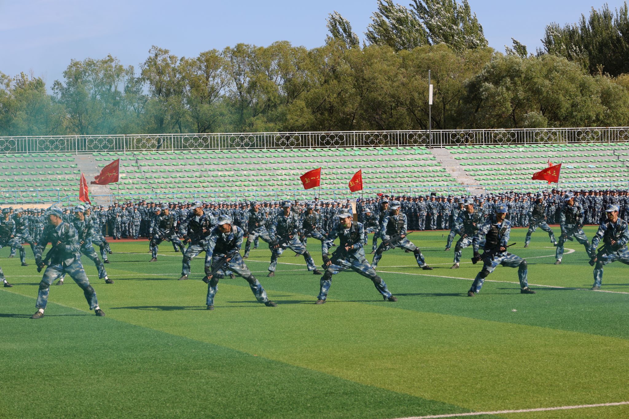 会操表演中,来自教育科学学院、数学科学学院、国际美术学院的同学们分别进行了捕俘拳和捕俘刀表演,由教官代表和学生代表组成的方阵进行了战术表演,赢得在场师生的热烈掌声,将大会气氛推向高潮。