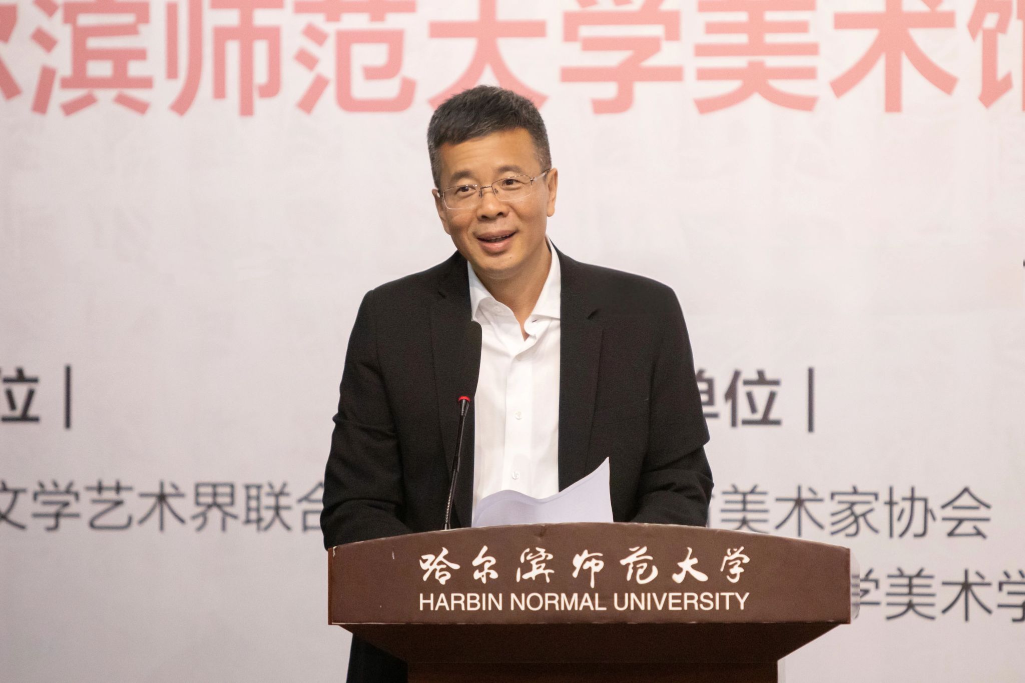 我校党委书记孙立军,中国美术家协会水彩画艺术委员会主任、黑龙江省文学艺术界联合会副主席、黑龙江省美术家协会主席赵云龙先后为展览开幕致辞。黑龙江省文学艺术界联合会党组副书记、副主席杨柏婷宣布展览开幕。