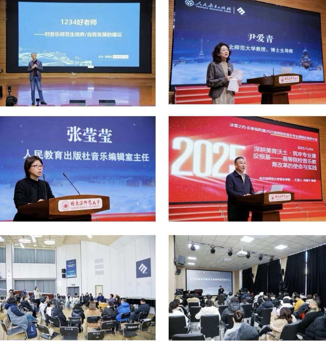 12月4日,由人民教育出版社音乐编辑室主办、哈尔滨师范大学音乐学院承办的“高等院校音乐教育专业课程建设研讨会”在我校召开。校党委常委、副校长徐国峰,中央音乐学院原副院长周海宏,东北师范大学音乐学院教授、博士生导师尹爱青,人民教育出版社音乐编辑室主任张莹莹等出席活动,开幕式由人民教育出版社音乐编辑室俞若愚主持。