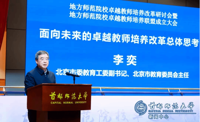 北京市委教育工委副书记、市教委主任李奕介绍,为共同应对基础教育发展新需求,深化教师教育供给侧结构性改革,北京市率先倡议并联合多所地方师范院校共同成立卓越教师培养联盟,旨在汇聚地方师范院校贴近一线、扎根实践的共同优势,以基础教育实际需求为导向,协同创新教师培养模式,强化师范生的实践能力与综合育人素养等。下一步,将以“系统重构、跨界协同”为改革基调,提出“浸润实践、标准引领、全程贯通”理念,构建“嵌入式—进阶式—认证制”教师教育实践体系,推动实现三大转变:从“理论主导”转向“知行深度融合”,从“分段培养”转向“职业全程贯通”,从“高校主责”转向“多元协同共育”,形成可复制推广的“首都方案”与“联盟方案”。